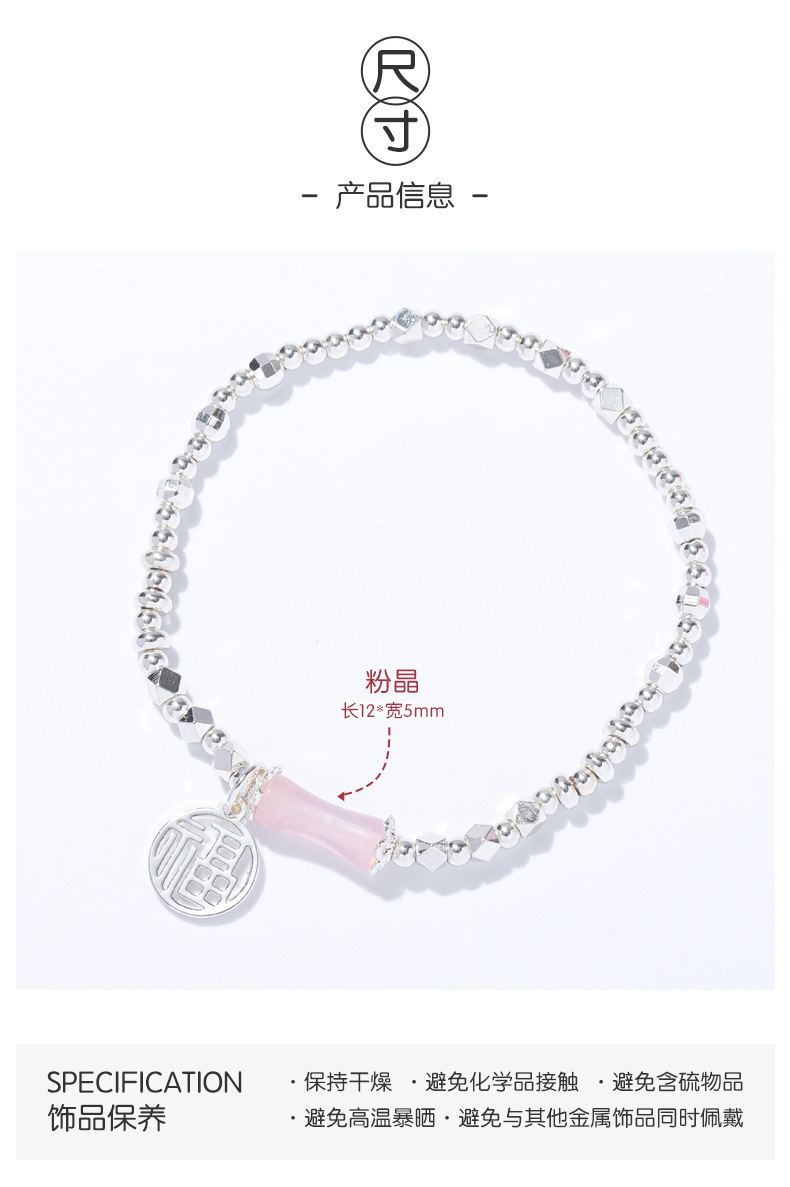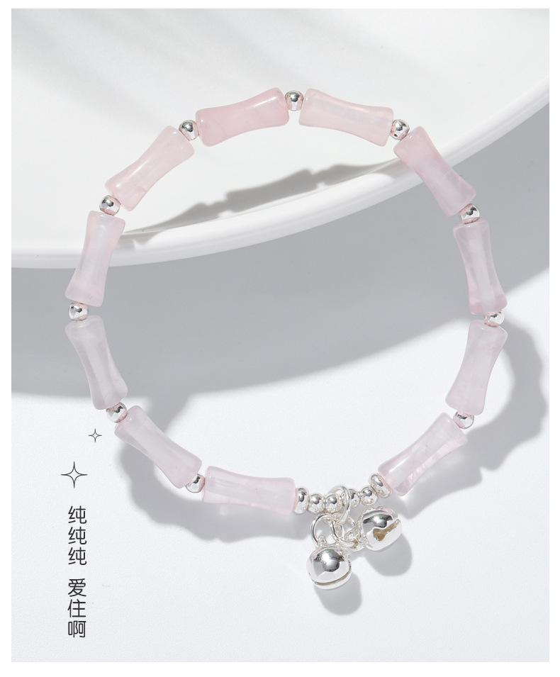 Natural Pink Crystal Slub Stacked Crystal Bracelet Fu Brand Bell Beaded Bracelet New Chinese Style National Style Vintage Bracelet