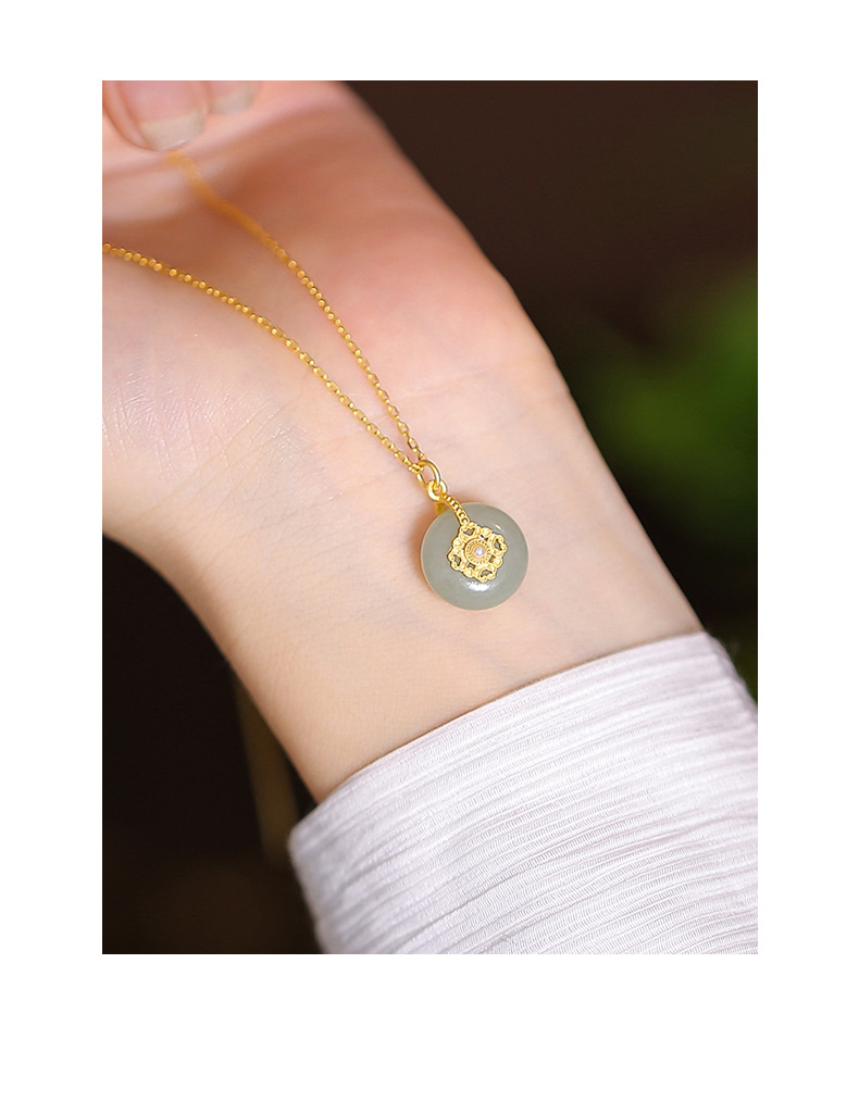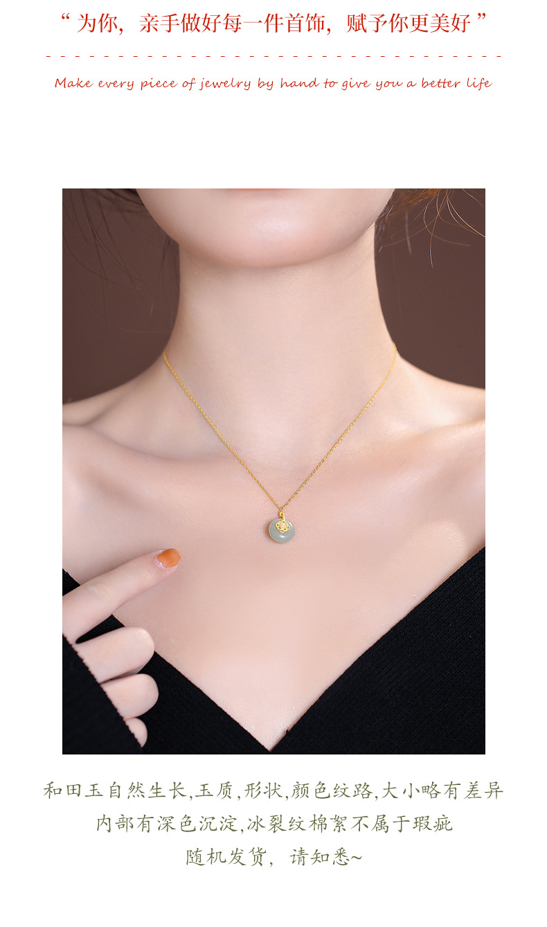 [year old peace] Badu jewelry Hetian jade peace buckle necklace female S925 silver Xiao total high-grade necklace light luxury