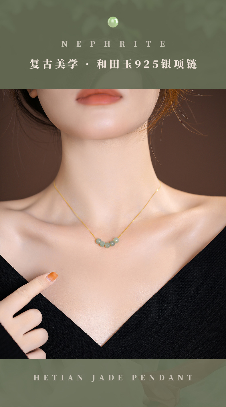 S925 Silver Necklace Batu Jewelry Shake Fast Live Necklace Light Luxury Hetian Jade Box Chain INS Style National Tide Necklace Pendant