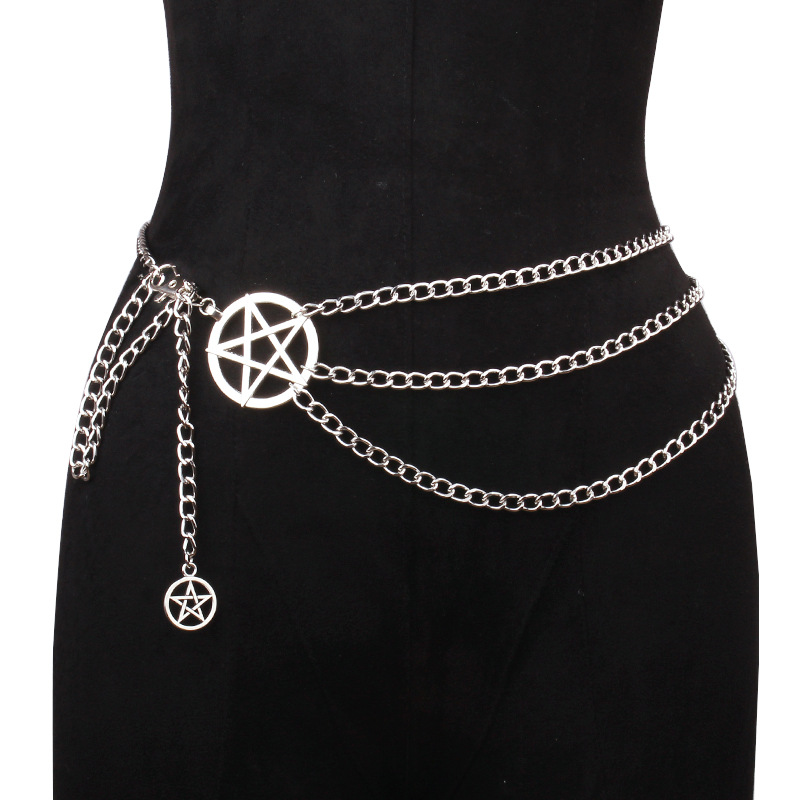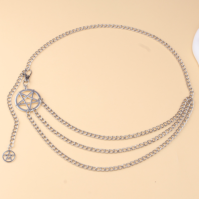 European and American cross-border jewelry retro five-pointed star chain sexy body chain multi-layer hot girl hollow tassel waist chain