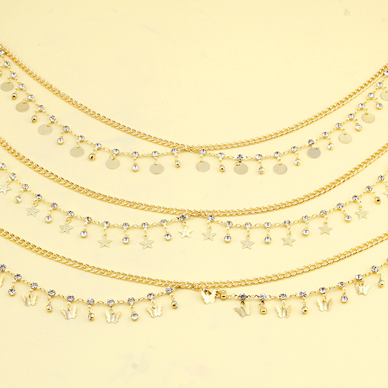 European and American Cross-border Jewelry Bikini Rhinestone Chain Waist Decorations Double Body Chain Butterfly Metal Tassel Waist Chain Women