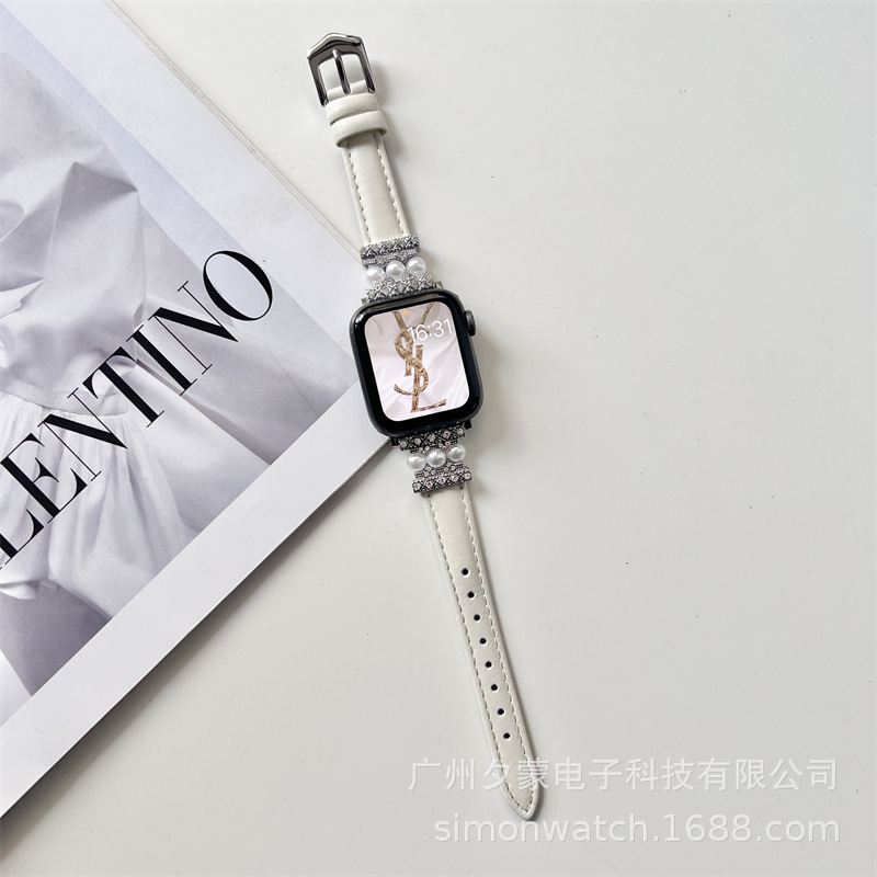 Suitable for Apple Watch iwatch8 Generation 7654se Homemade New Pearl Connector Fine Leather Strap