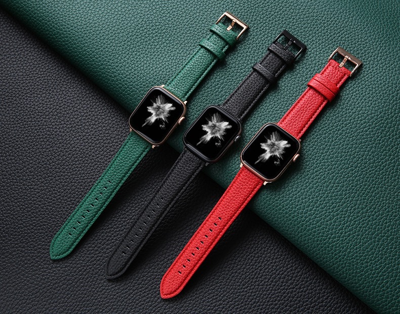 Suitable for AppleWatch Apple Litchi Pattern Watch Band Leather Strap Litchi Leather Smart Watch Band New