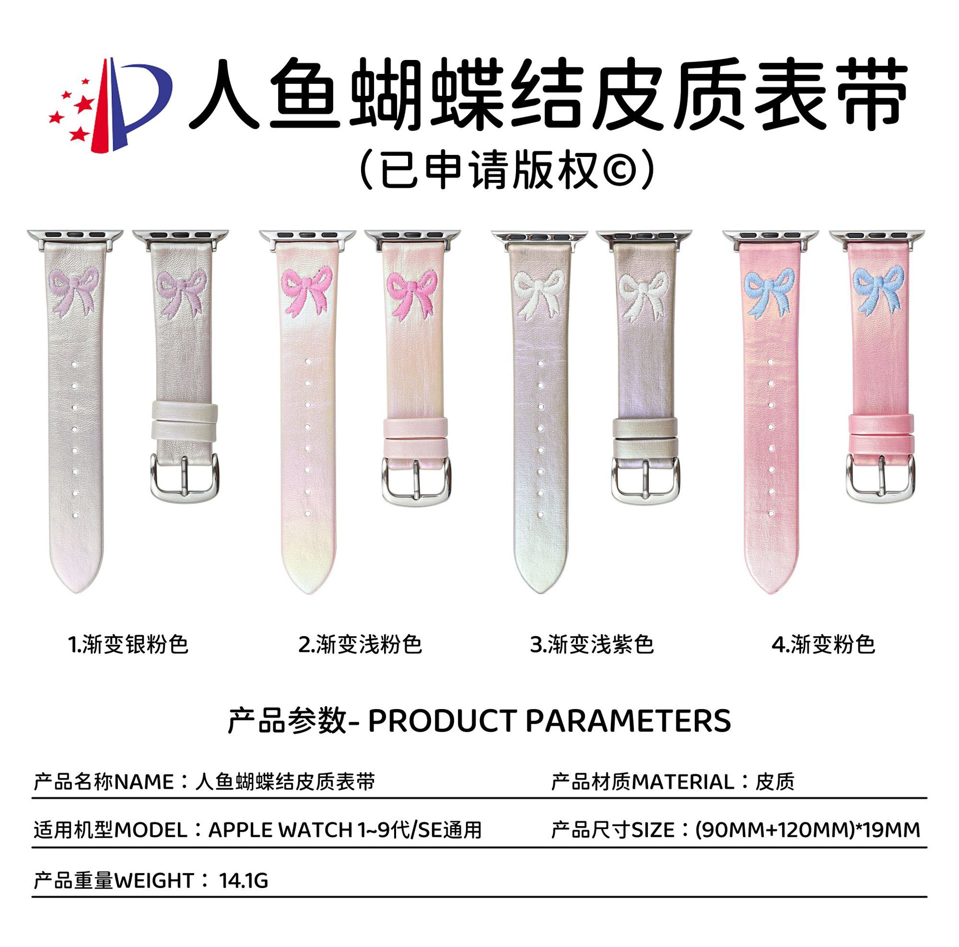 Mermaid Gradient Bow Leather Strap for applewatch Apple Watch iwatch9 Generation 8765432