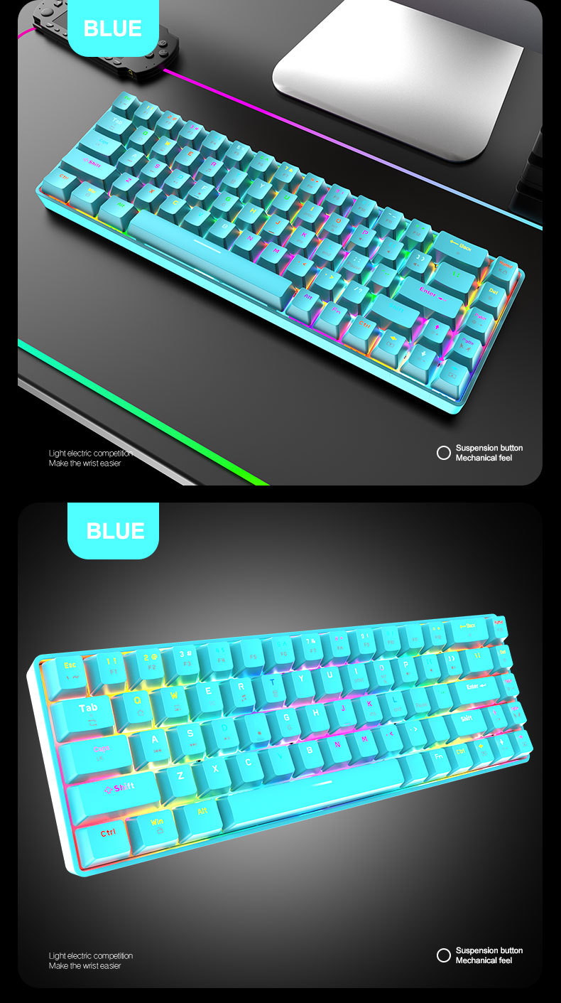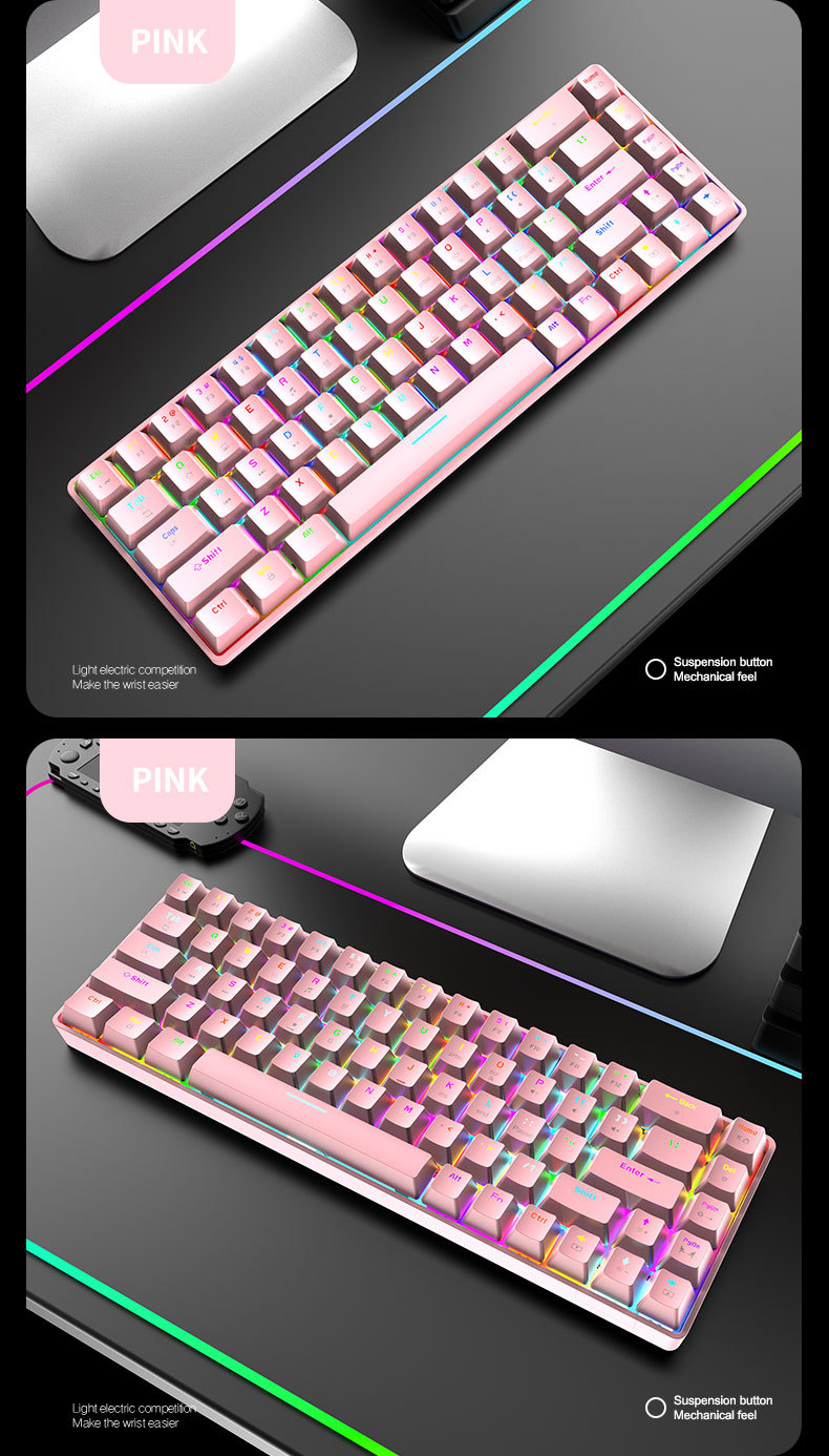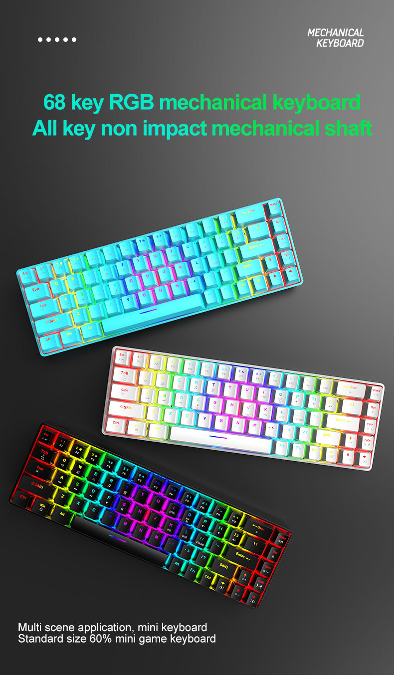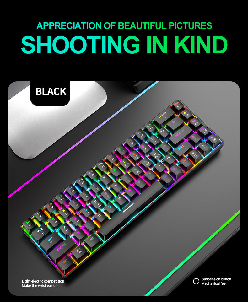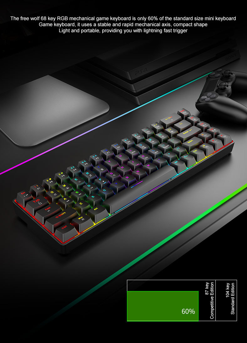 Free Wolf T8RGB Keyboard 68 Key RGB Luminous Gaming Mechanical Keyboard Computer Laptop MAC60% Keyboard