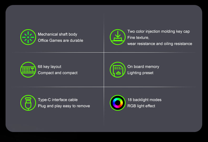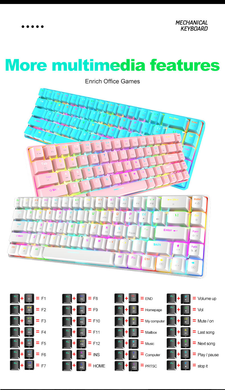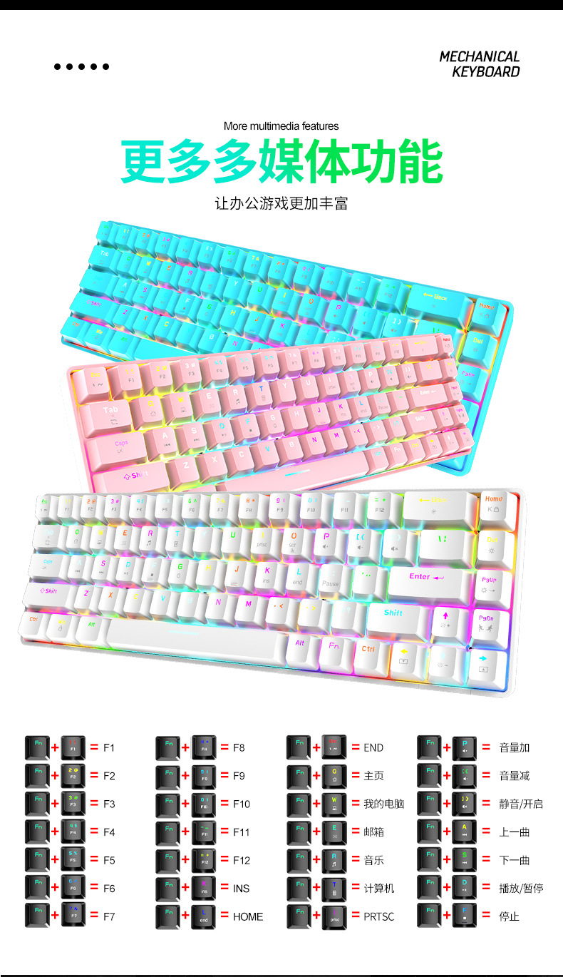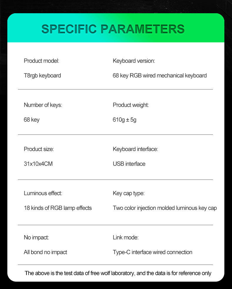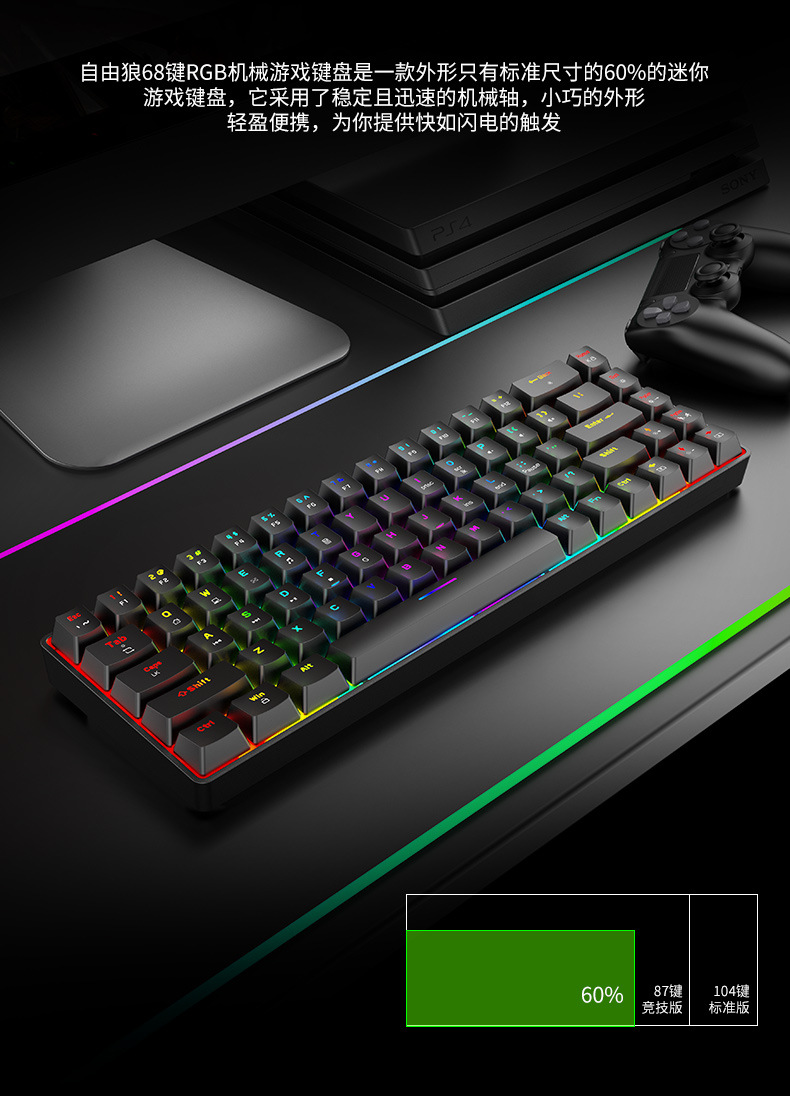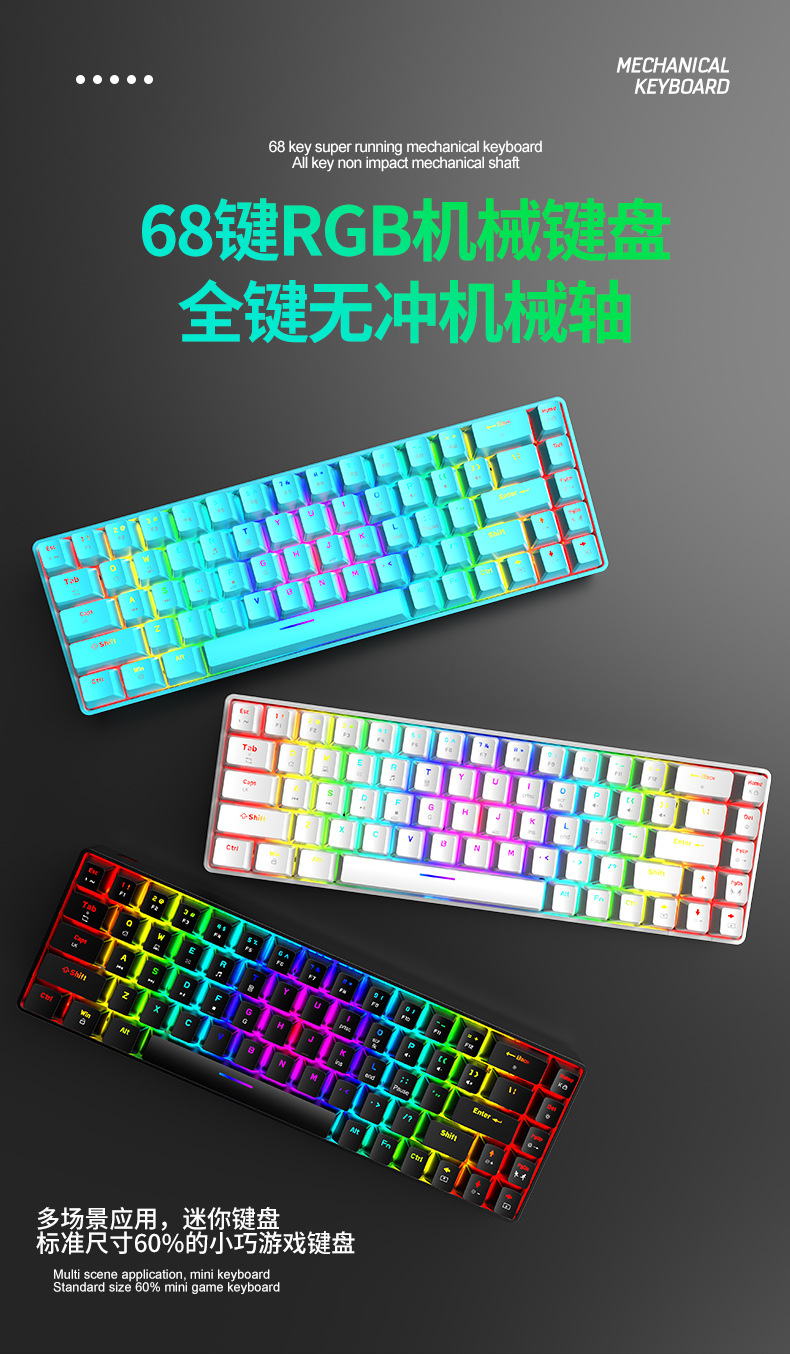 Free Wolf T8RGB Keyboard 68 Key RGB Luminous Gaming Mechanical Keyboard Computer Laptop MAC60% Keyboard