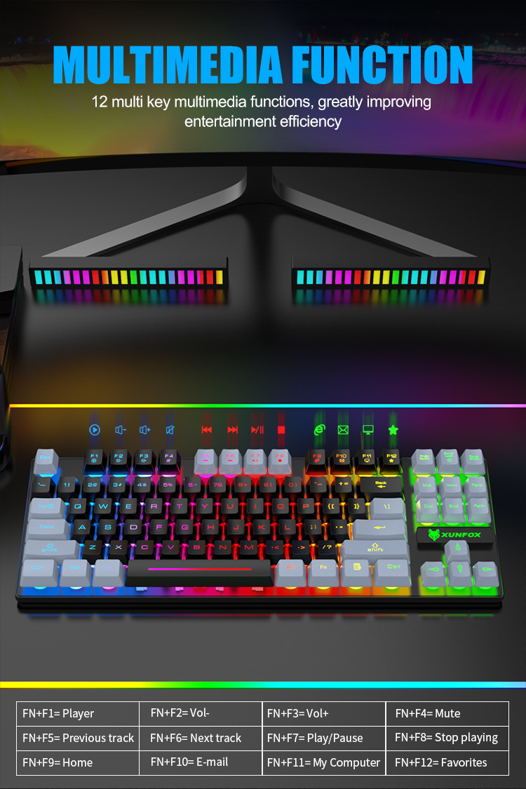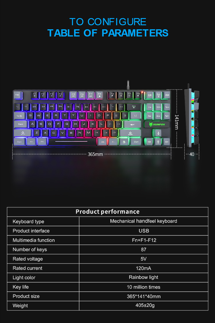 Hyun Silver Fox K10 Mechanical Feel Wired E-sports Game Suspension Luminous Keyboard Desktop Computer Notebook 87 Keys