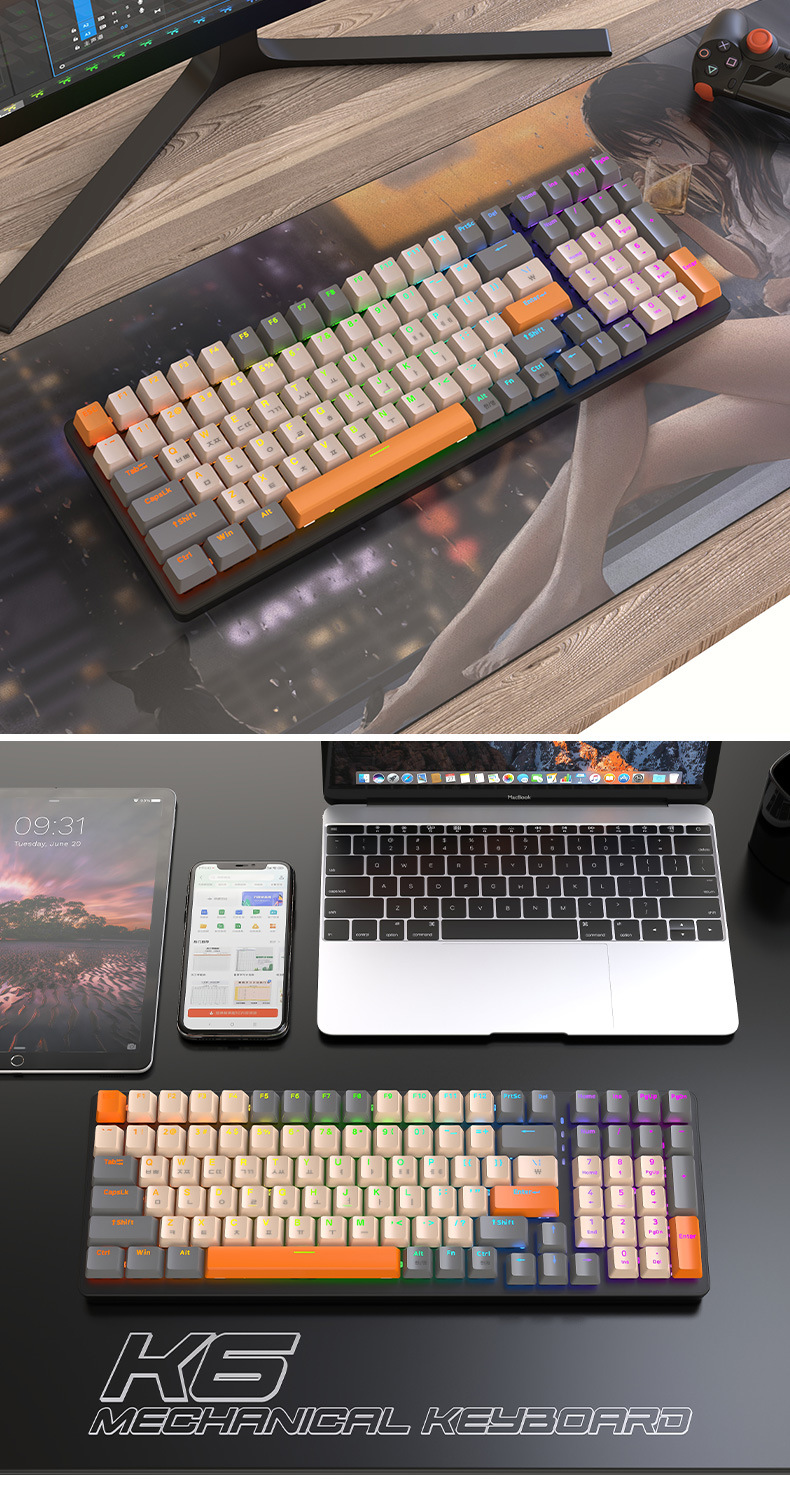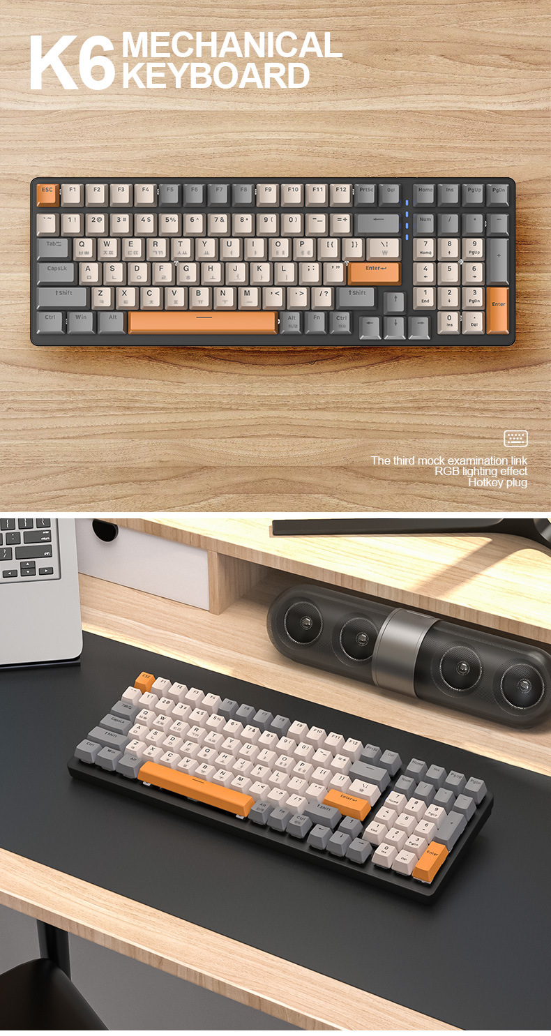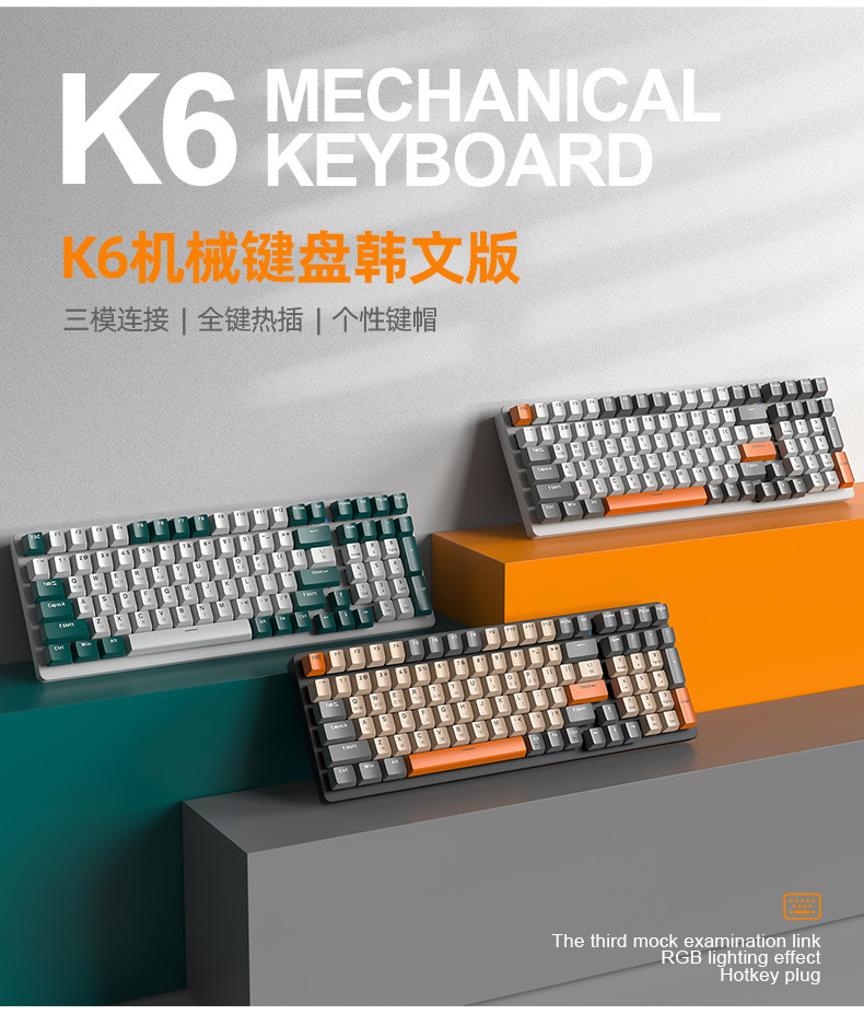 Free Wolf K6 Korean Bluetooth Wireless Three-Mode Mechanical Keyboard South Korea Game Hot Plug South Korea Language Keyboard