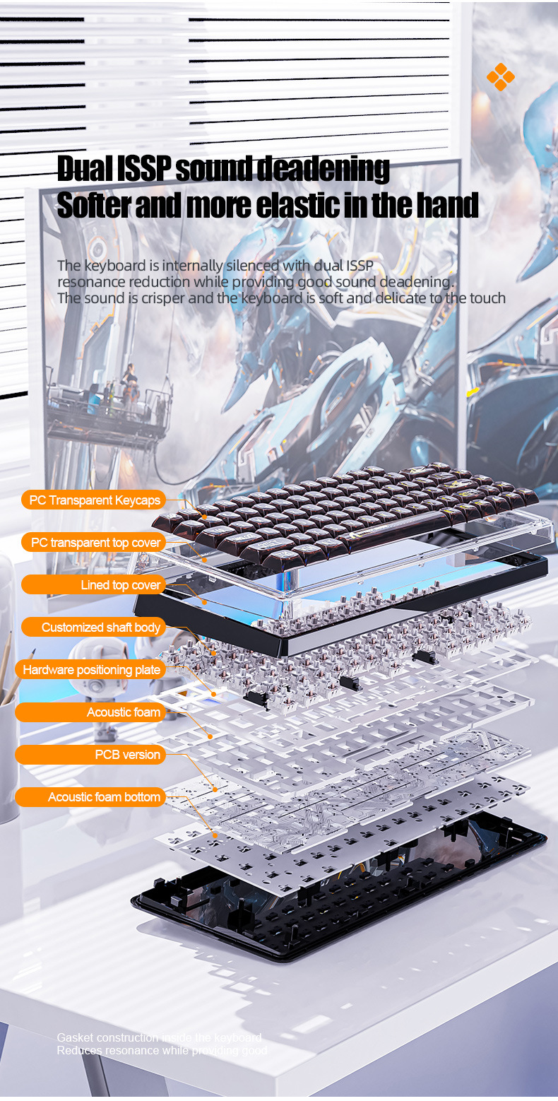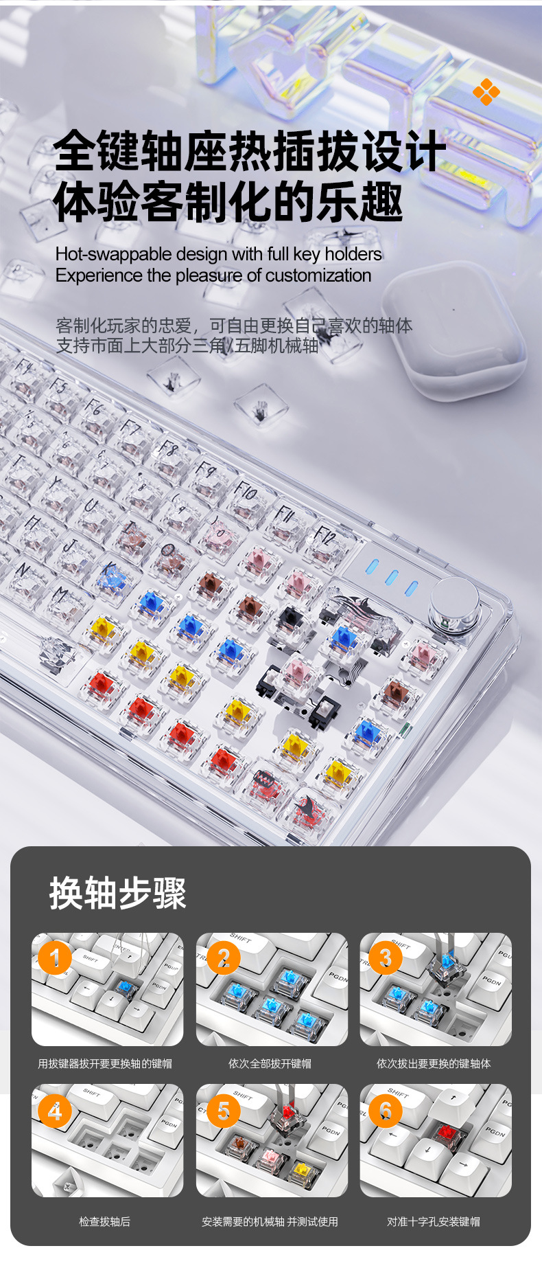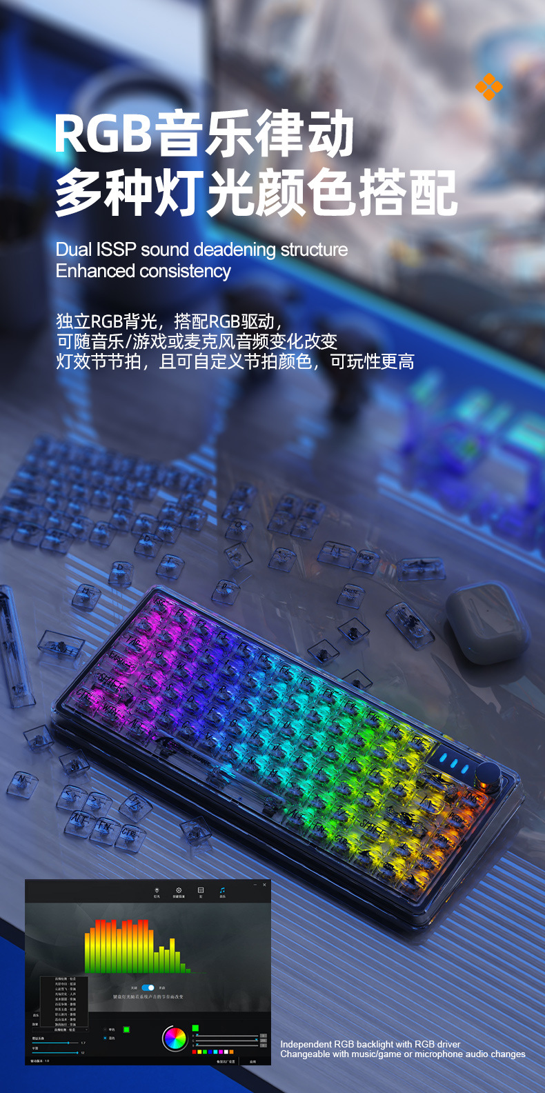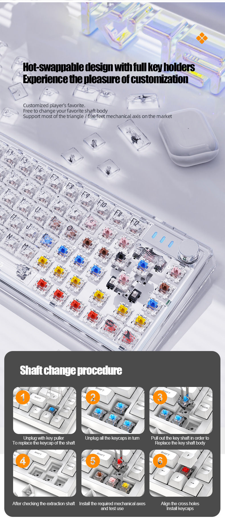 Attack Shark K75 Transparent Mechanical Keyboard Customized Wired RGB Hot Plug Gaming Keyboard