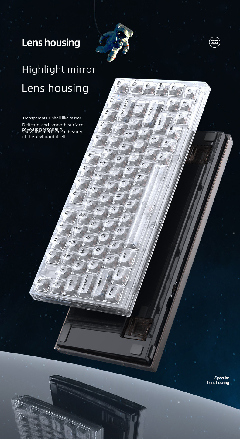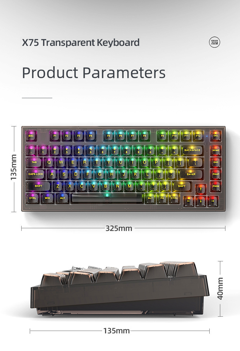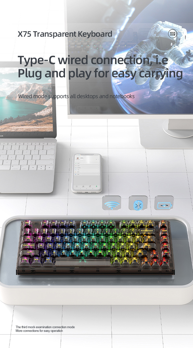 Xinmeng X75 Wireless Mechanical Keyboard Bluetooth Transparent Gasket Customized Wired RGB Hot Plug Kaihua Jellyfish