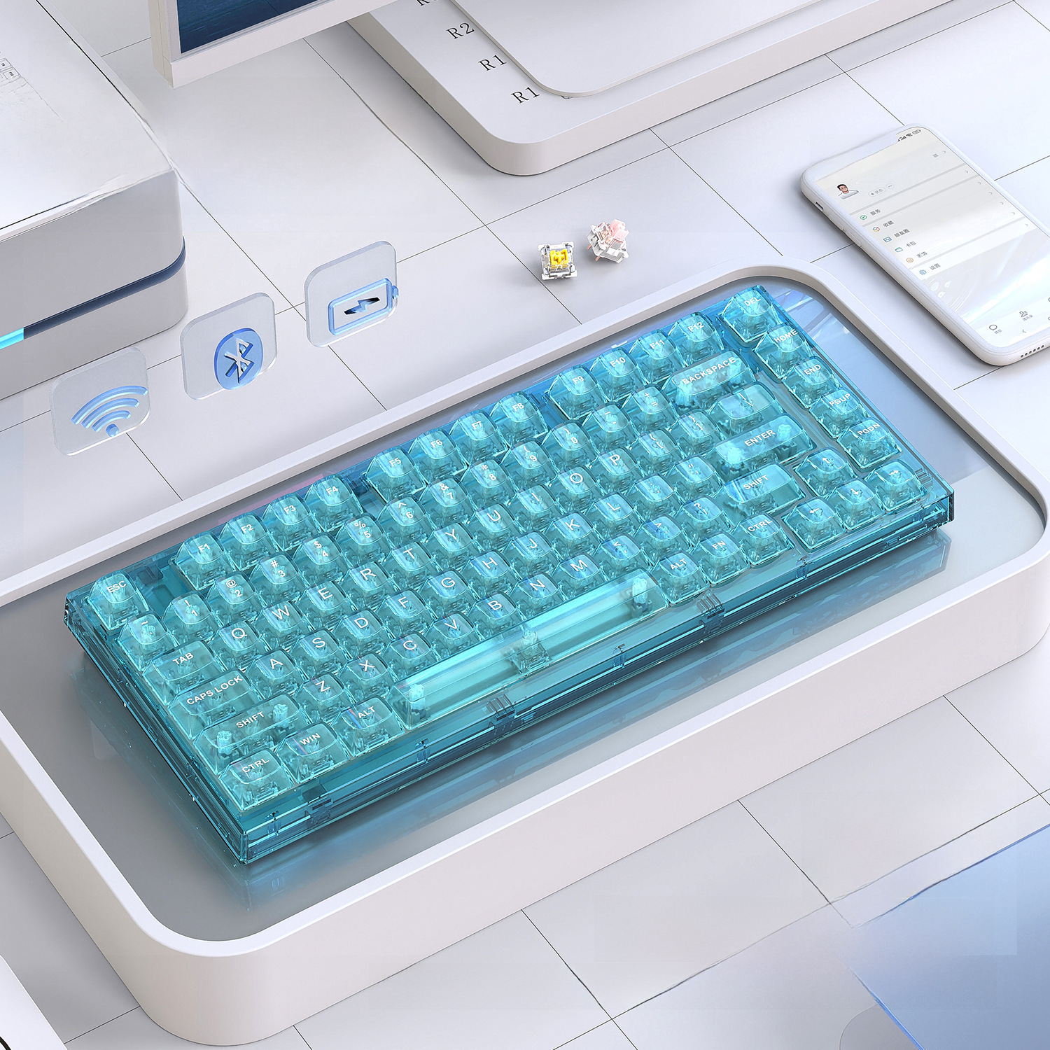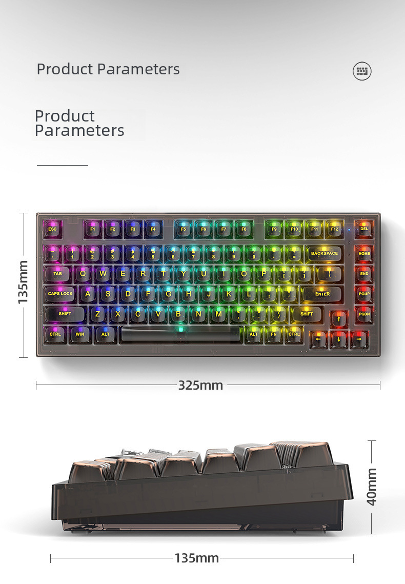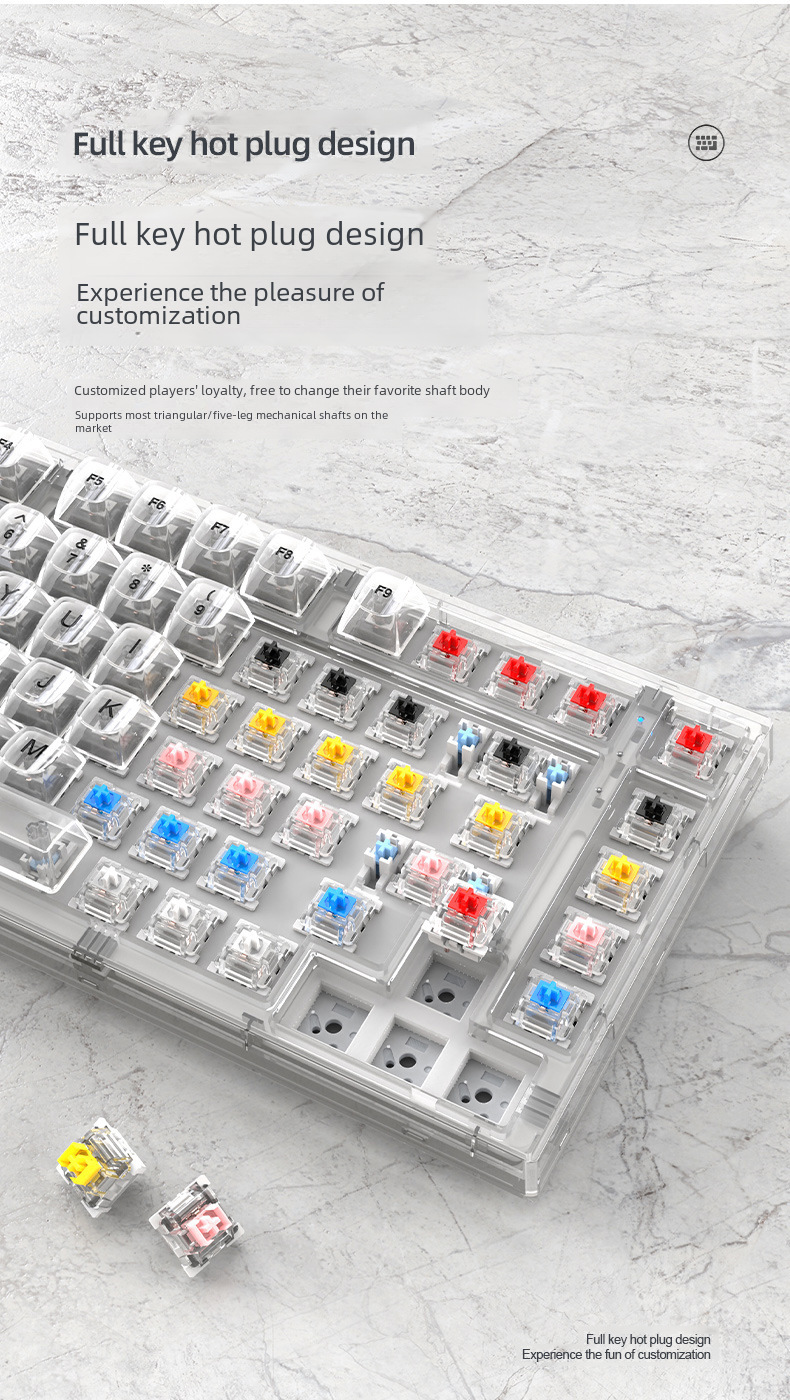 Xinmeng X75 Wireless Mechanical Keyboard Bluetooth Transparent Gasket Customized Wired RGB Hot Plug Kaihua Jellyfish