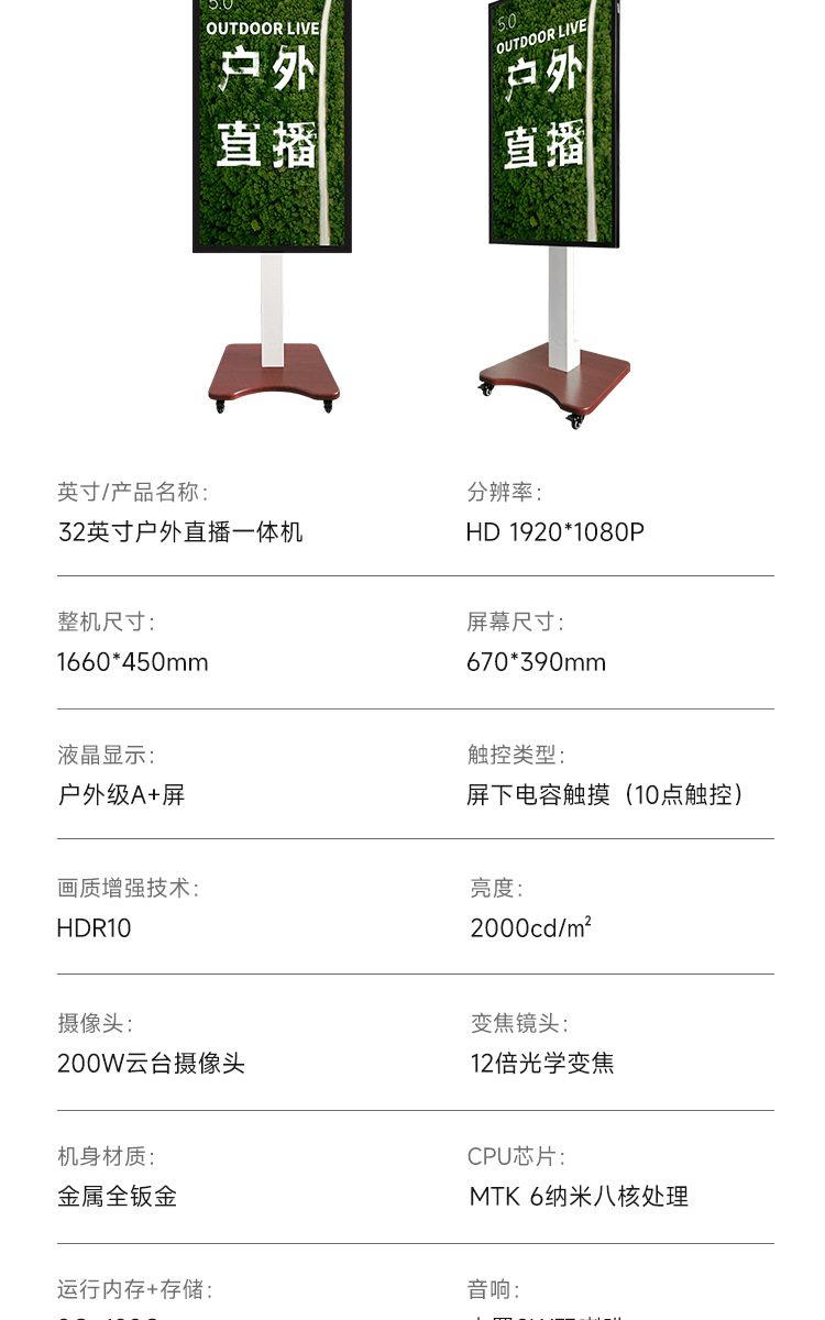 Outdoor shaking sound with goods live all-in-one mobile phone screen large screen display green screen direct broadcast machine equipment screen