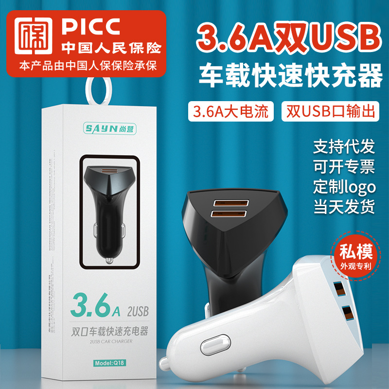 Shangying private model 3.6A dual USB one-to-two car super fast charger 12-24V car universal car charger