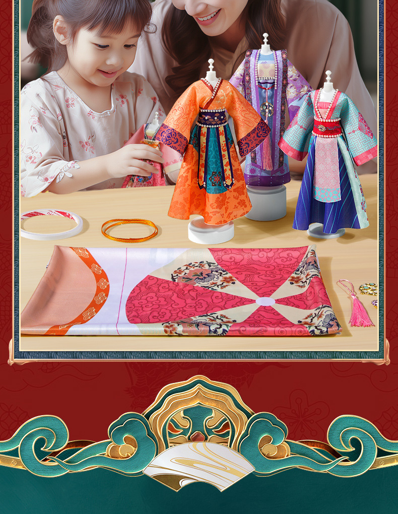Girls New Year Birthday Gift Clothing Design DIY Children's Hanfu Cut Dress Doll Handmade Creative Toys