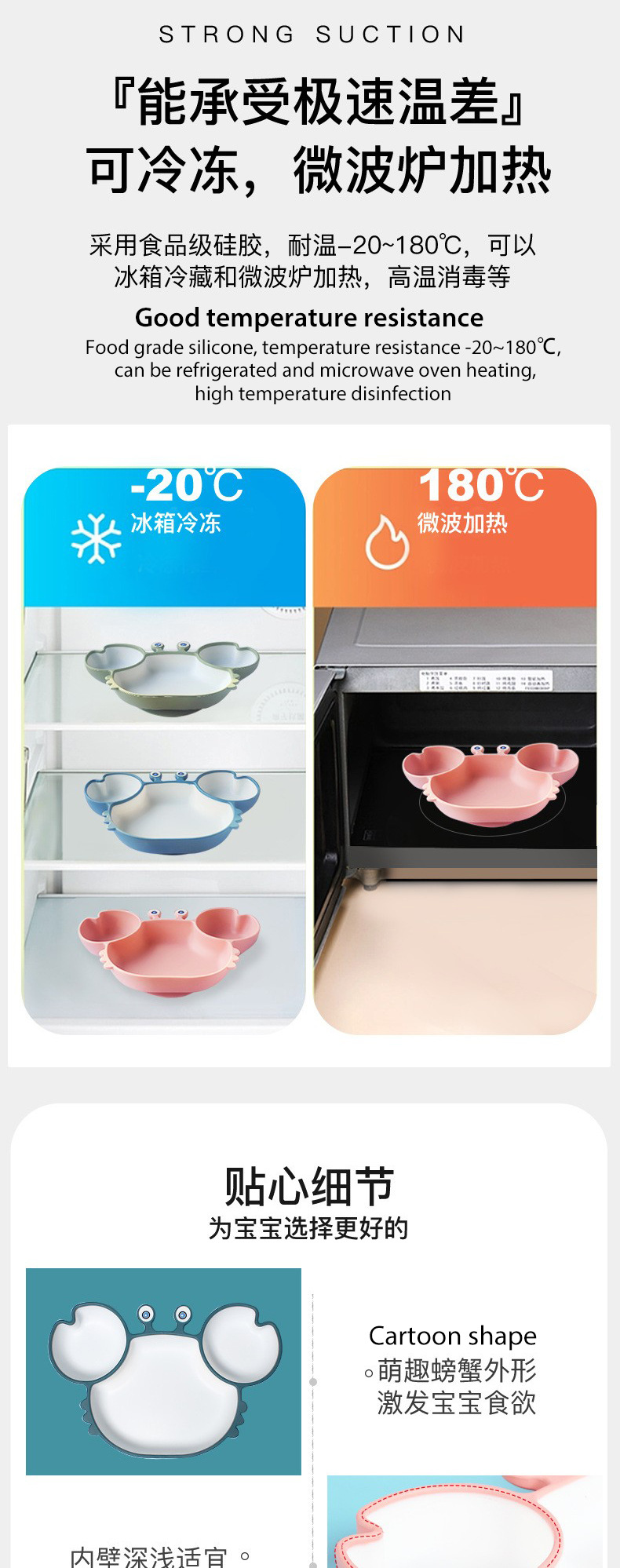 Silicone Training Tableware Baby Crab Dinner Plate Baby Children's Tableware Suction Cup Supplementary Bowl for Learning to Drink Maternal and Infant Supplies