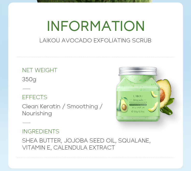 Cross-border lecome avocado scrub 350g angle quality smooth skin rejuvenation cosmetics skin care manufacturers wholesale