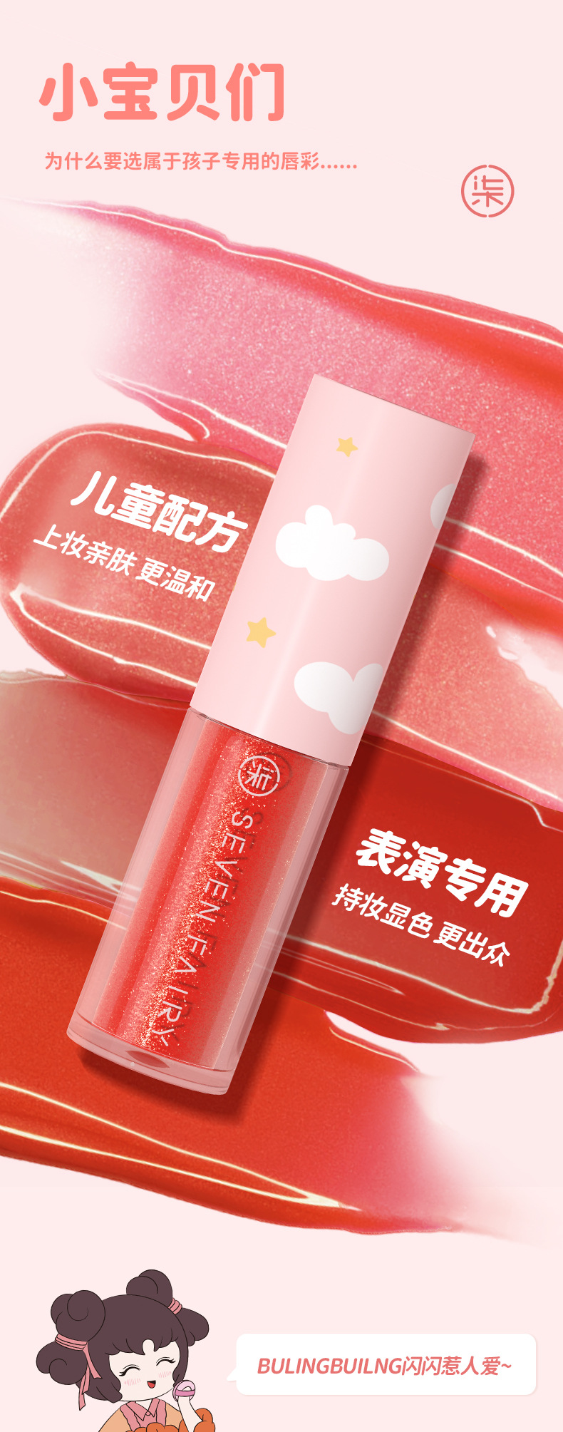 Seven small fairy water light lip gloss stage performance children's cosmetics students party kindergarten birthday gift pearl lip gloss