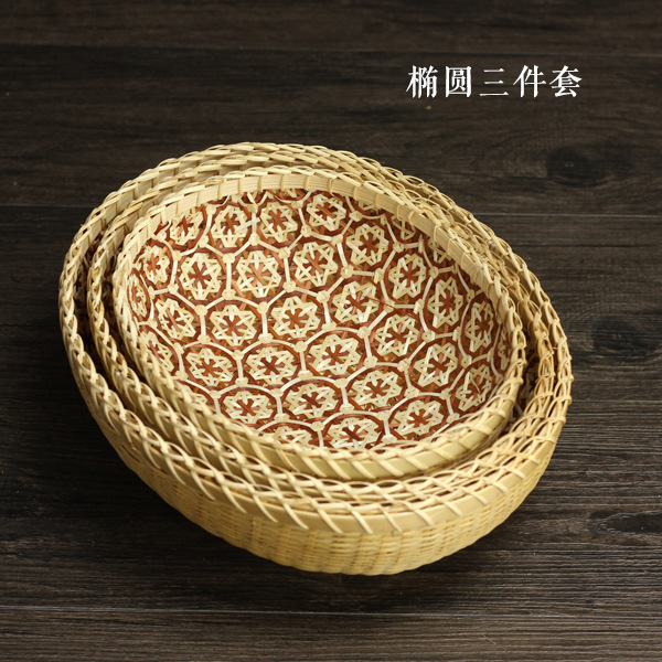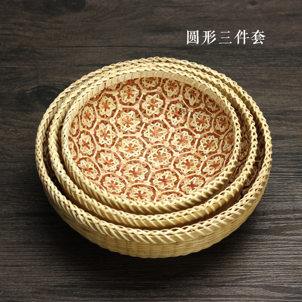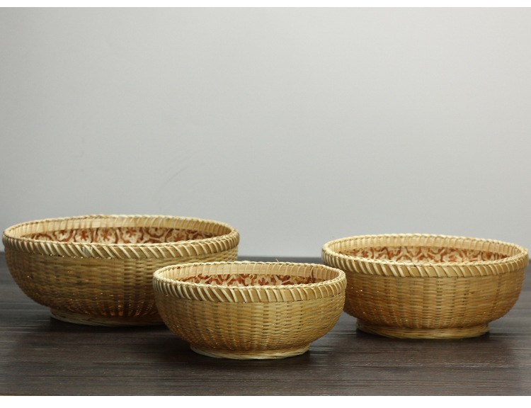 Safflower Bottom Bamboo Fruit Basket Handmade Storage Dim Sum Basket Tea Room Restaurant Farmhouse Decoration Decorative Desktop Fruit Plate