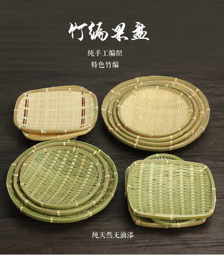 Bamboo Wraft Fruit Plate Bamboo Green Layer Bamboo Tray Handmade Special Bamboo Products Dinner Plate Small Dustpan Hotel Farmhouse Decoration