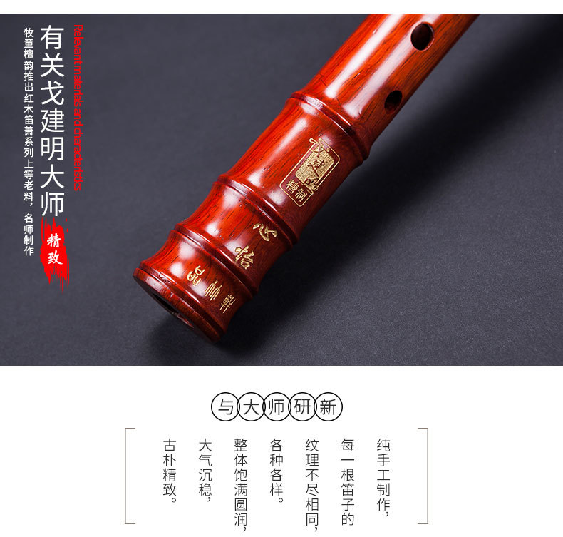 Shepherd Boy Sandalwood Rhyme Collection of Red Sandalwood Xiao 6/8 Hole Nan Xiao Chi Ba Musical Instrument Master Pro-made and Accessories Collection