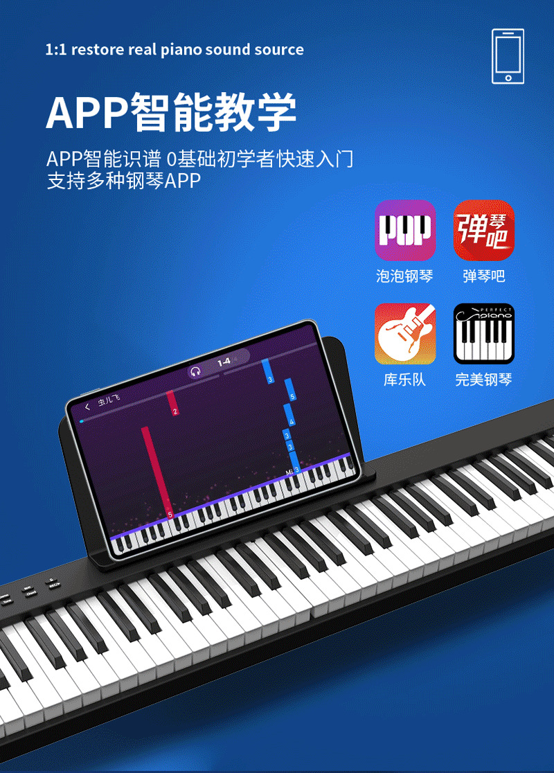 Kehuixing PJ88C Portable 88 Key Intelligent Folding Piano Electronic Organ Home Professional Electronic Piano Musical Instrument