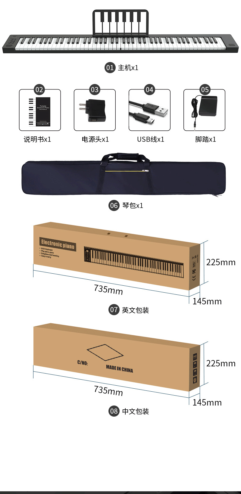 Kehuixing PJ88S Lightweight Portable Piano Type Foldable Charging Keyboard Professional Intelligent Electronic Piano