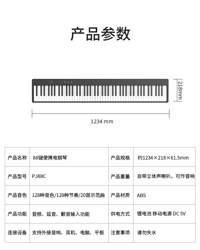 Cross-border 88 key portable intelligent folding electronic organ PJ88CD with light professional adult electronic piano musical instrument
