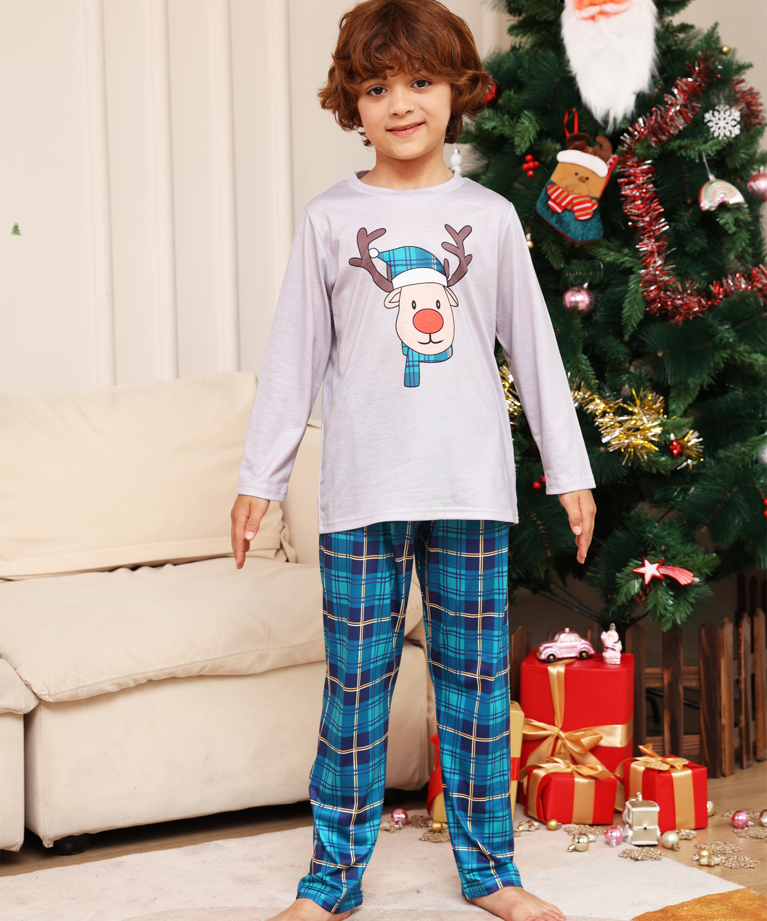 2023 Europe and the United States Amazon cross-border new Plaid cartoon fawn Christmas parent-child printed home clothes pajamas