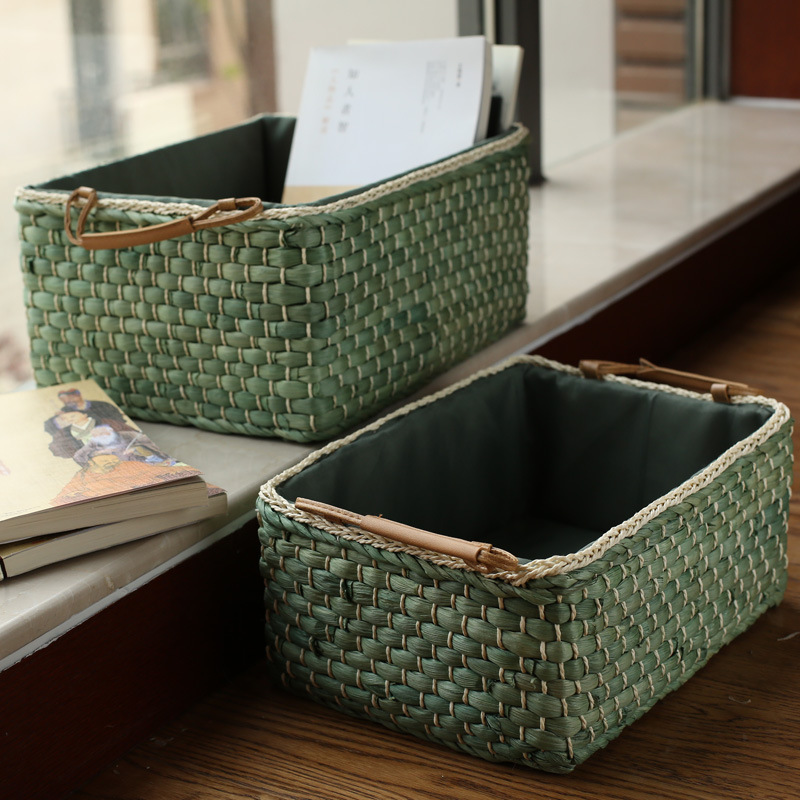 2024 New Design Corn Skin Woven Storage Basket Table Cosmetic Clothes Toy Snacks Sundry Storage Basket
