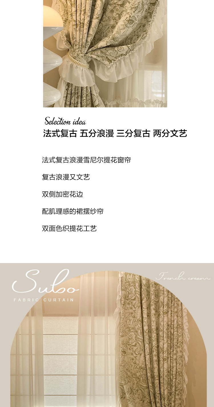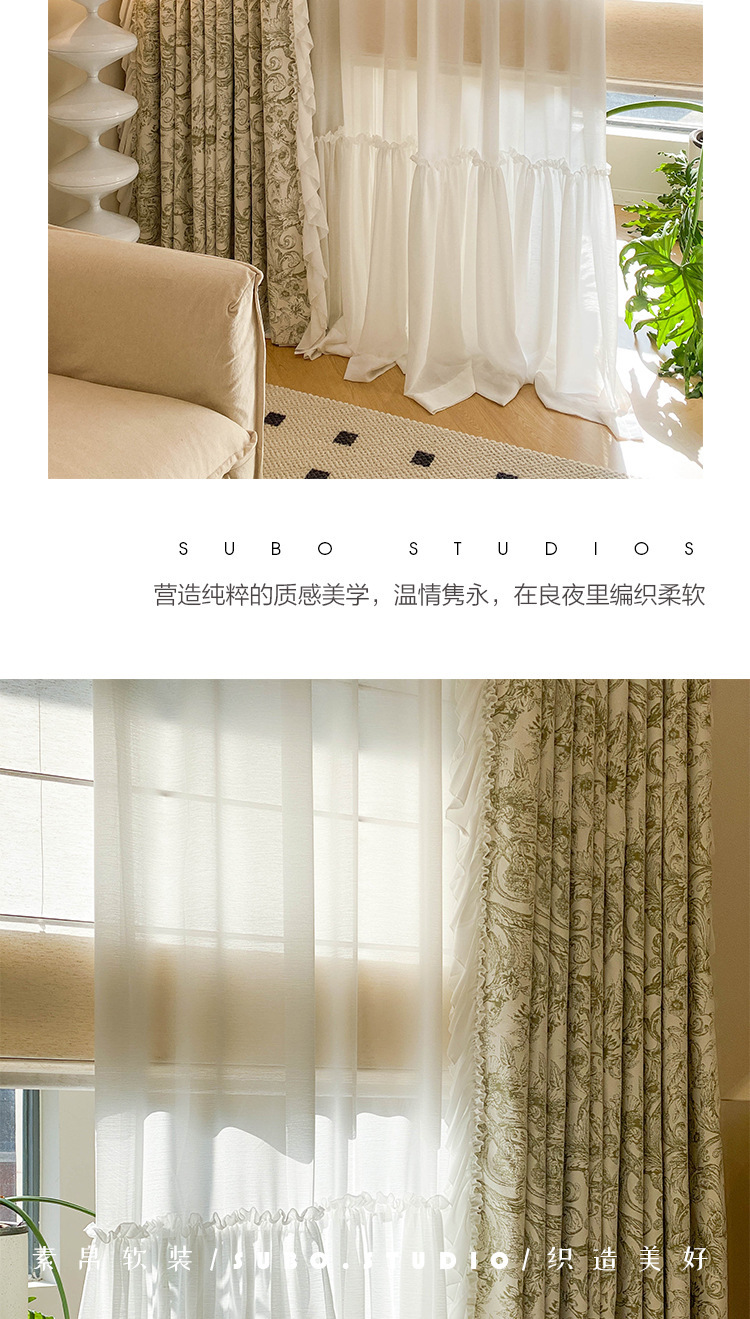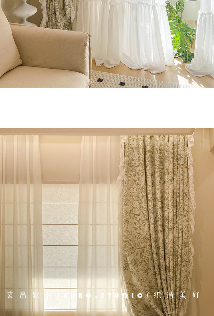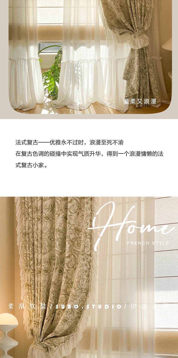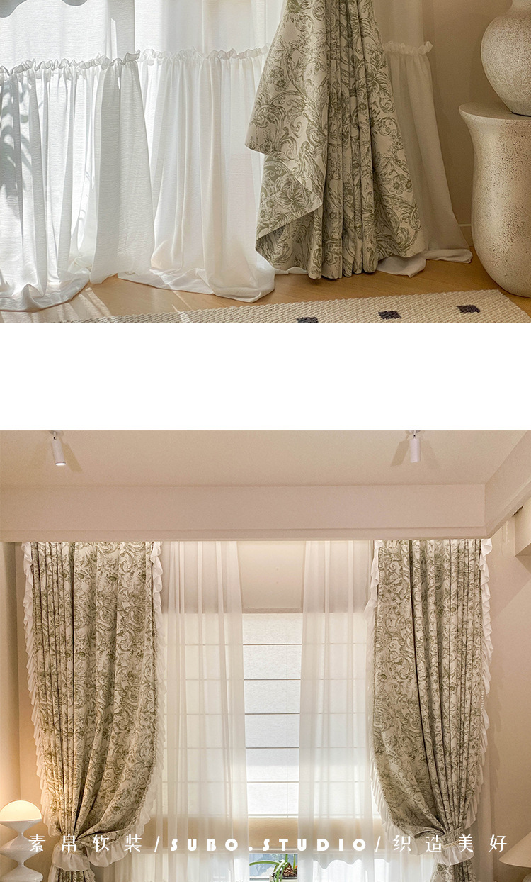 French Morris Matcha Green Curtain Living Room Bedroom Bay Window Balcony Lace Children Chenille Jacquard Curtain