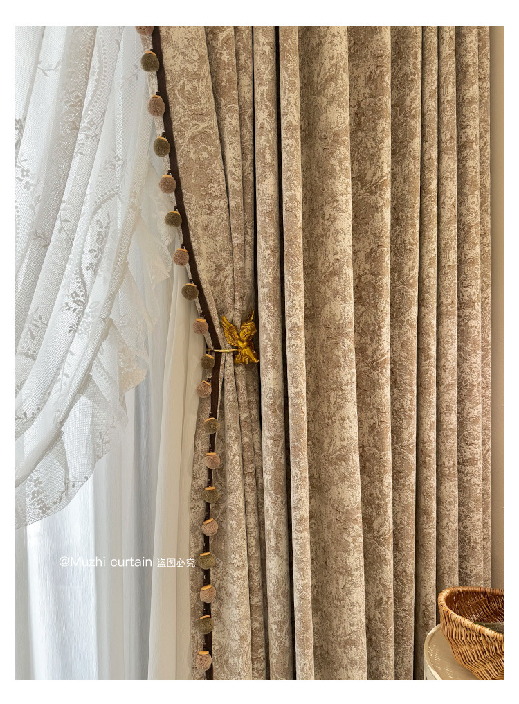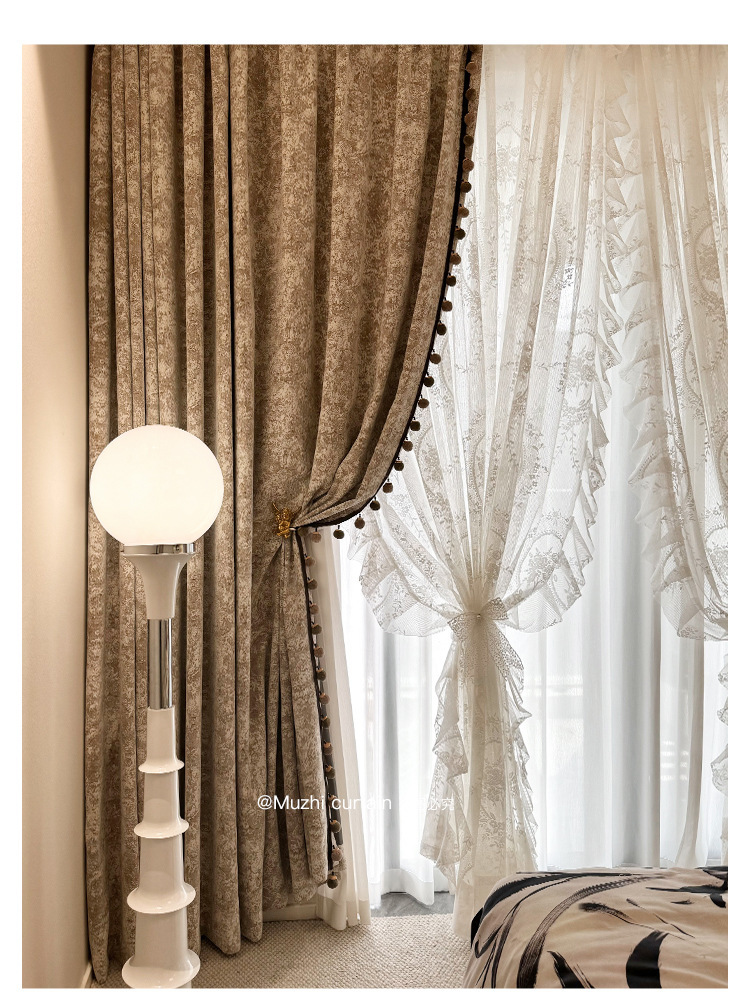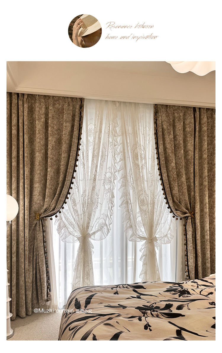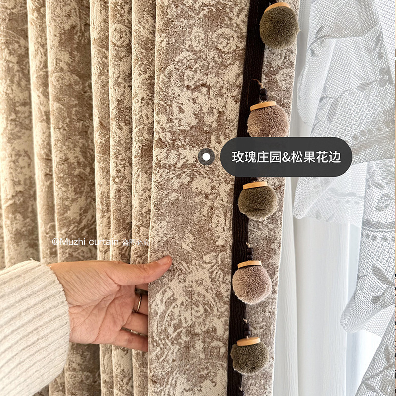 American Retro Rose Wizard of Oz Red Brown Chenille Jacquard Shading Curtain Living Room Bedroom Shading New Yarn Curtain