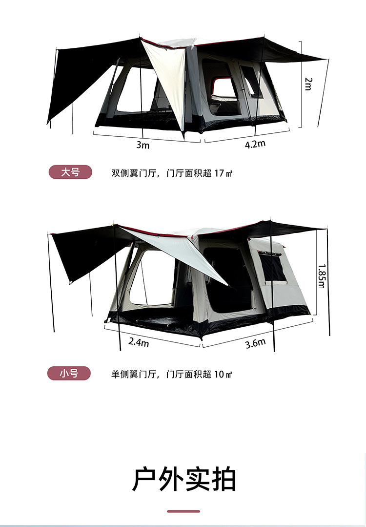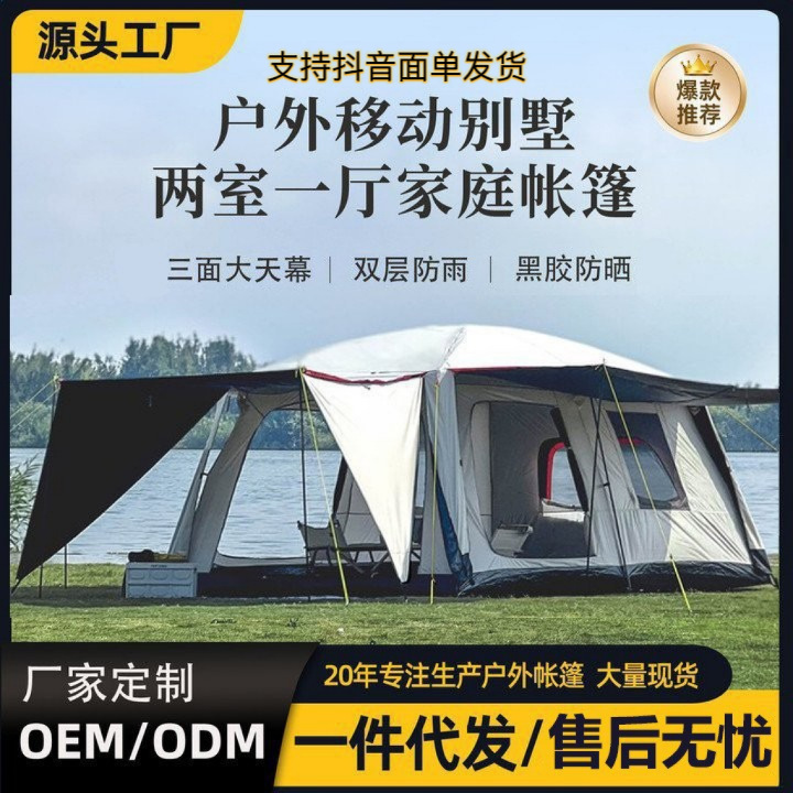 Outdoor Tent Camping Tent 8-10 People Black Rubber Double-Layer Tent Two-Room One-Hall Camping Tent Park Tent