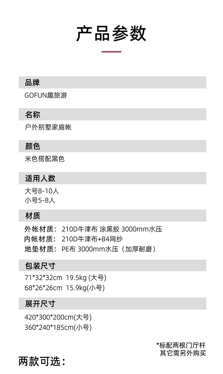 • 210D Oxford cloth 8-10 people (420*305*200cm)
