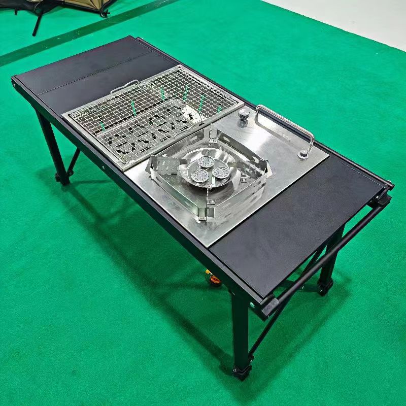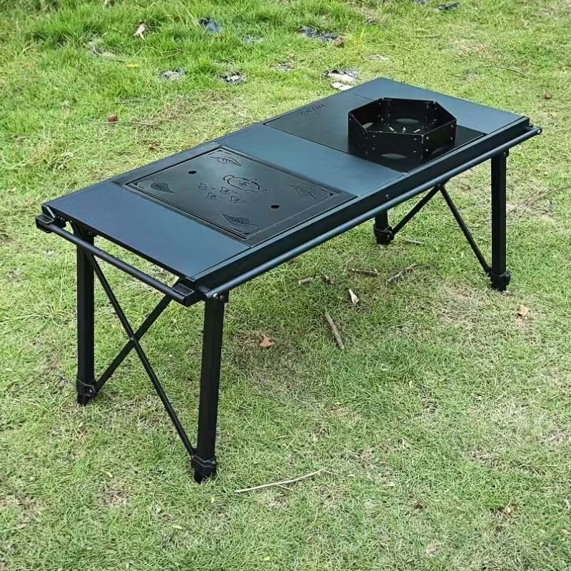 Outdoor Folding Table Black Picnic BBQ IGT Movable Kitchen Portable Camping Lifting Tactical Table