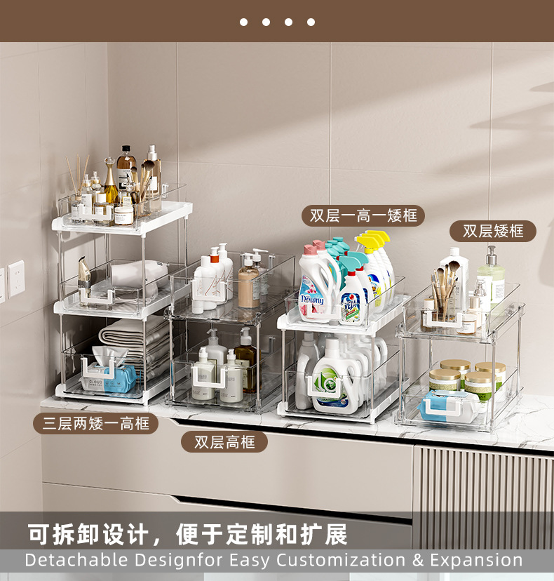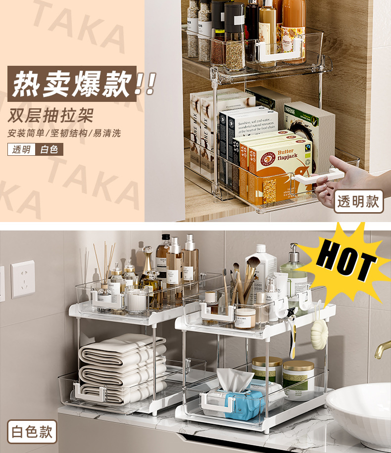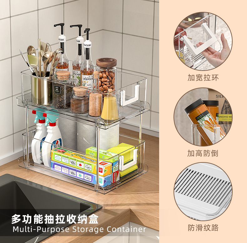 Kitchen Living Room Multi-layer Storage Rack Multi-functional Cabinet Layered Double-layer Pull-out Storage Rack Under Sink Storage Rack