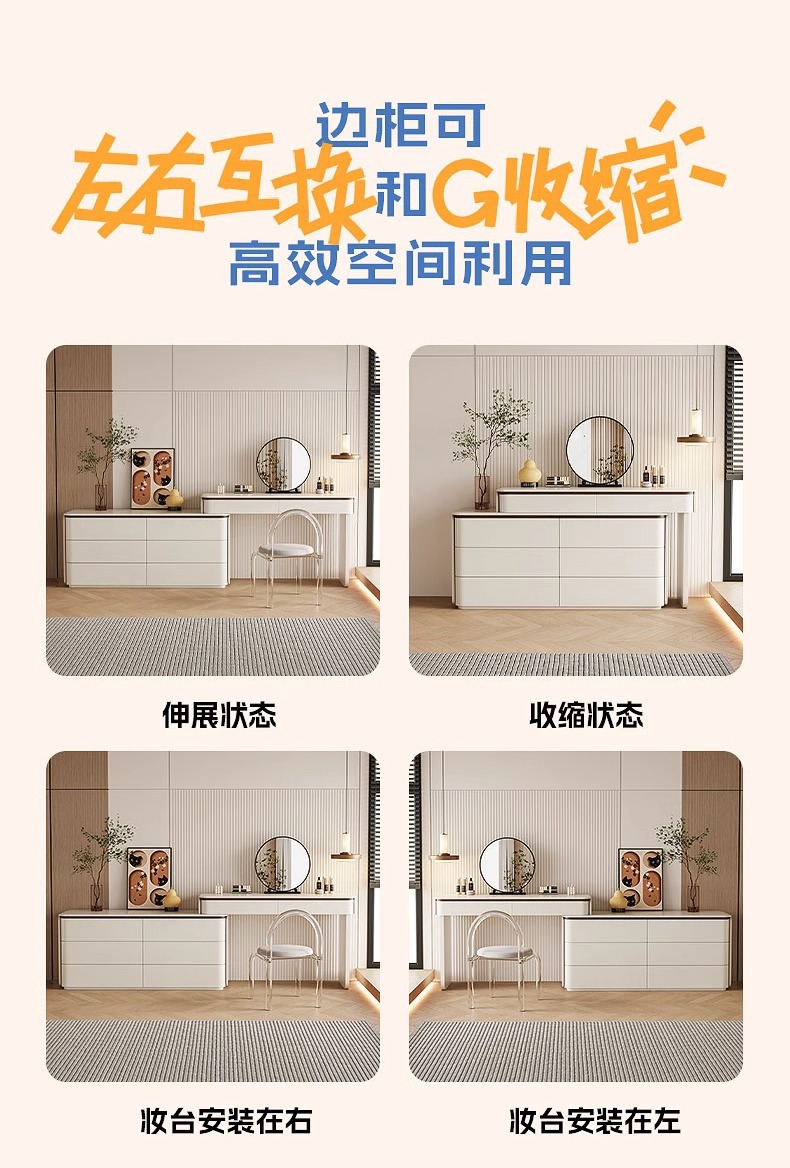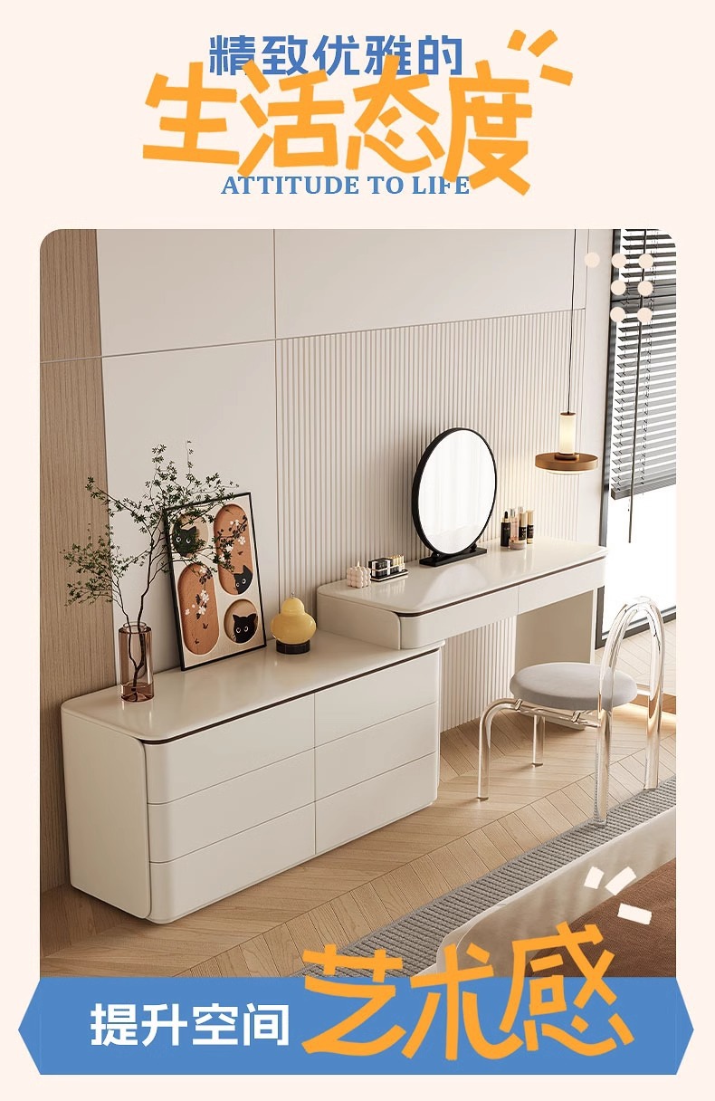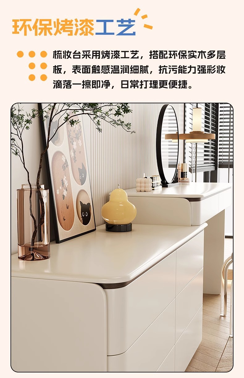Italian Paint Dressing Table Storage Cabinet Integrated Bedroom Cream Style Corner Bed End Bucket Cabinet Retractable Makeup Table Solid Wood