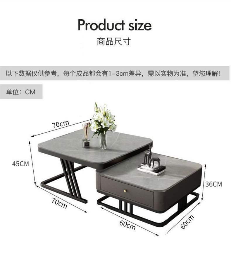 Light Luxury Coffee Table Living Room Household Glass Rock Board Cyber Celebrity Table Modern Simple Small Apartment New Style Square Coffee Table