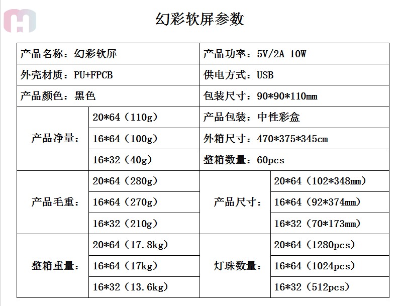 智能款16*32像素512颗灯(尺寸175x70mm)+送双USB车充 智能款16*64像素1024颗灯(尺寸375x92mm)+送双USB车充 智能款20*64像素1280颗灯(尺寸350x110mm)+送双USB车充 智能款16*96像素1536颗灯(尺寸600x120mm)+送双USB车充 1 2