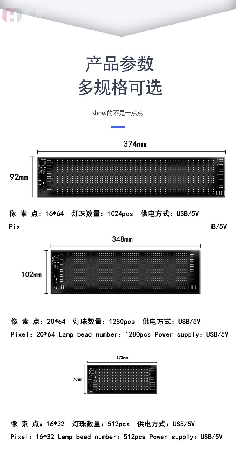 智能款16*32像素512颗灯(尺寸175x70mm)配APP控制 智能款16*64像素1024颗灯(尺寸375x92mm)配APP控制 智能款20*64像素1280颗灯(尺寸350x110mm)配APP控制【热卖尺寸】 智能款16*96像素1536颗灯(尺寸600x120mm)配APP控制