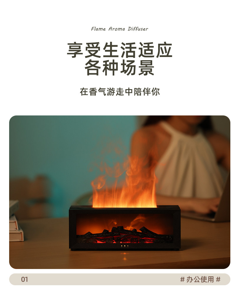 Simulation fireplace flame aroma diffuser desktop mute USB home bedroom high color value air atmosphere light humidifier