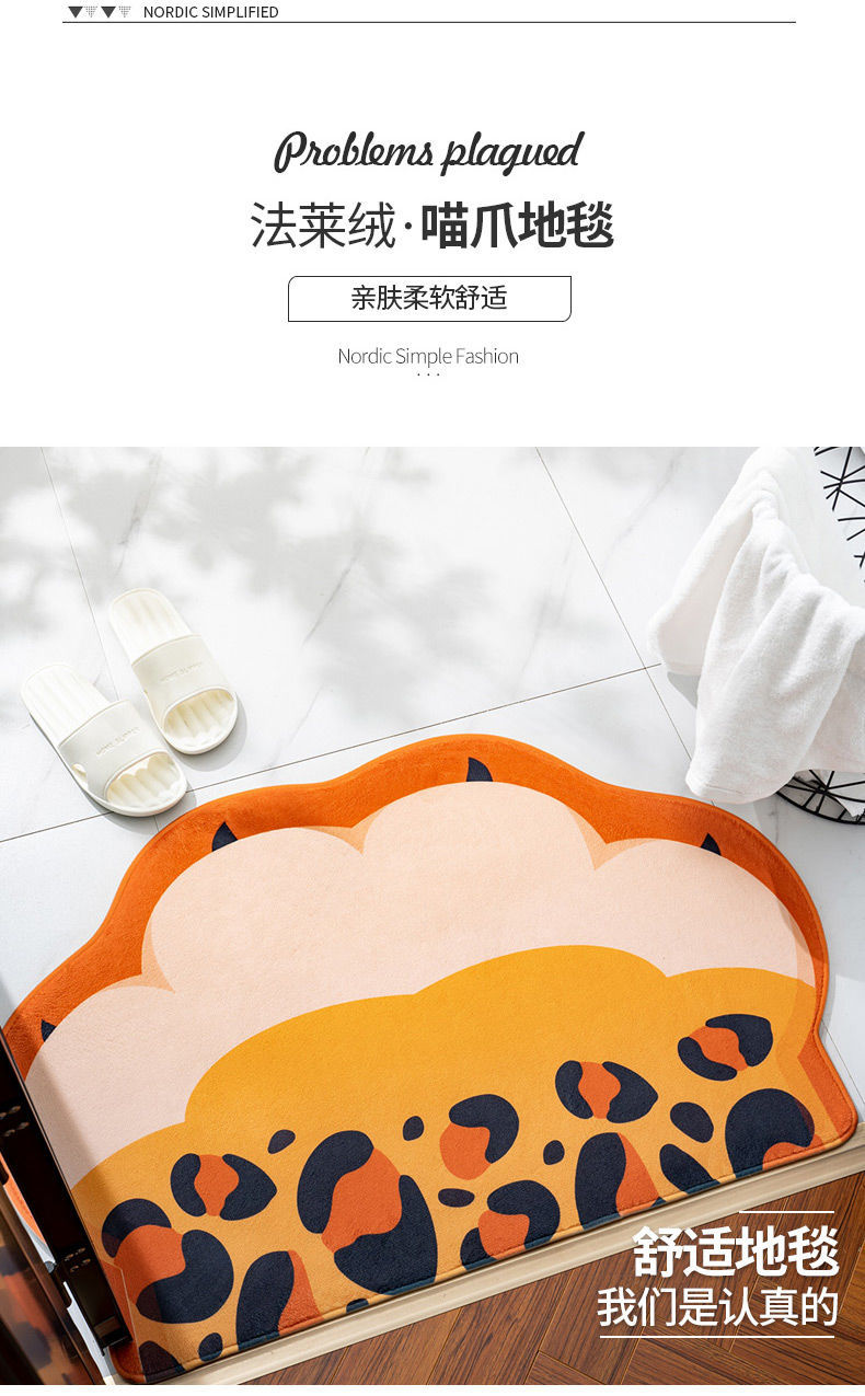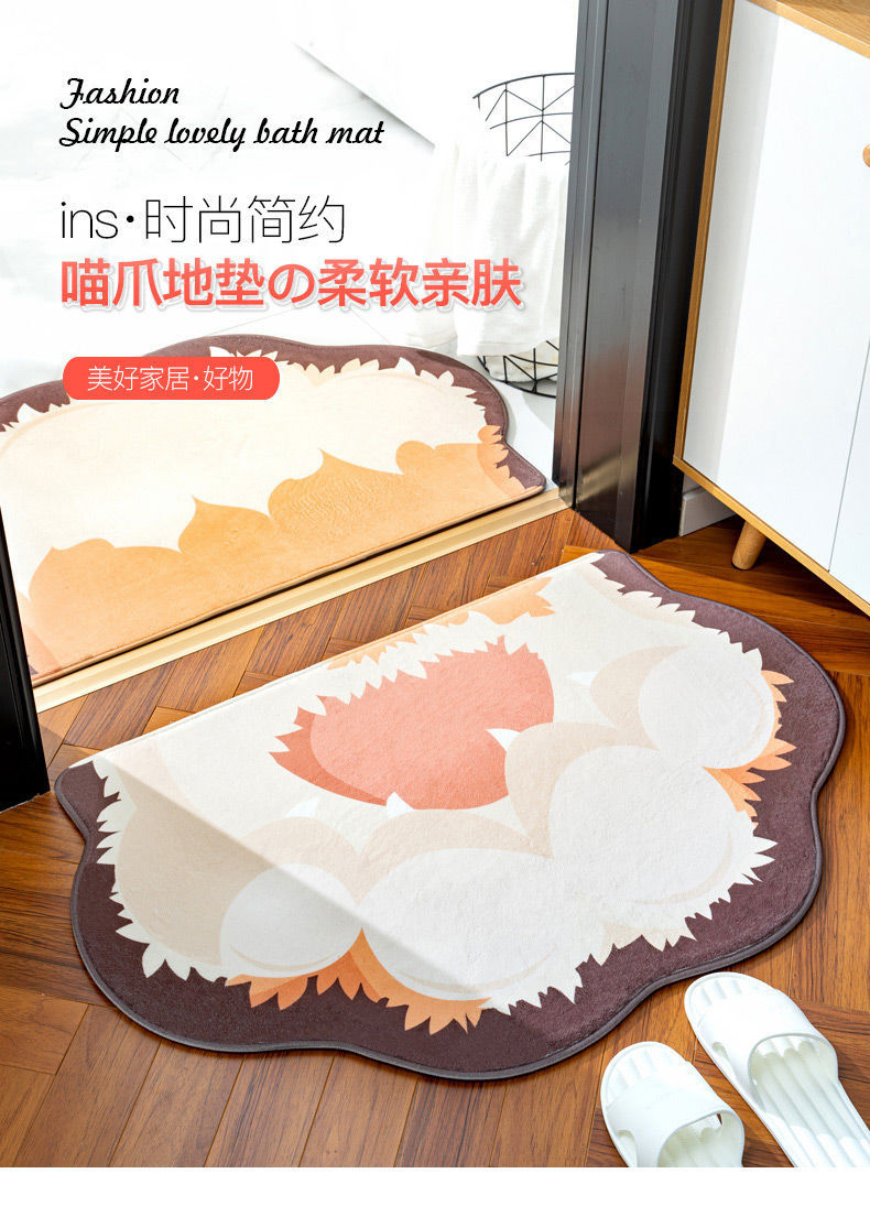 Cartoon Cute Cat's Paw Floor Mat Toilet Bathroom Toilet Door Water Absorbent Foot Mat Household Entrance Carpet Door Mat