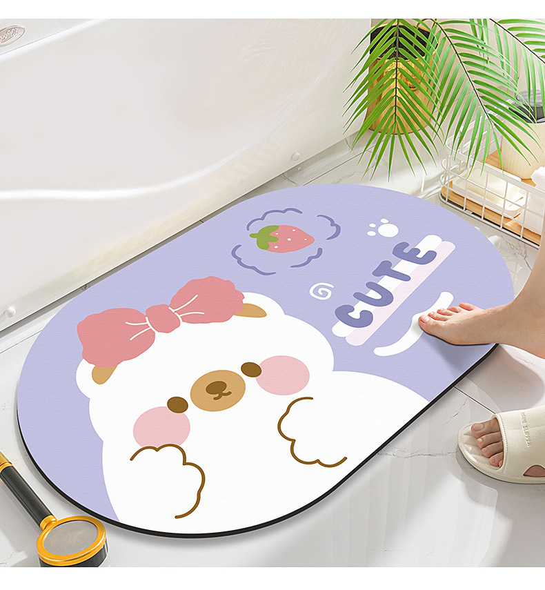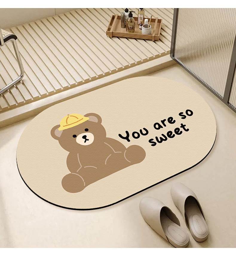Cartoon Bear Bathroom Mat Soft Diatom Absorbent Mat Household Bathroom Toilet Entrance Door Non-slip Mat Door Mat