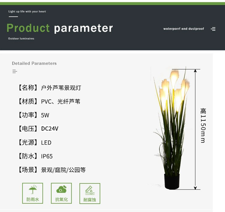 Reed lamp waterproof outdoor landscaping lamp garden balcony decorative lamp luminous ornaments lawn lamp scenic spot lighting pu reed