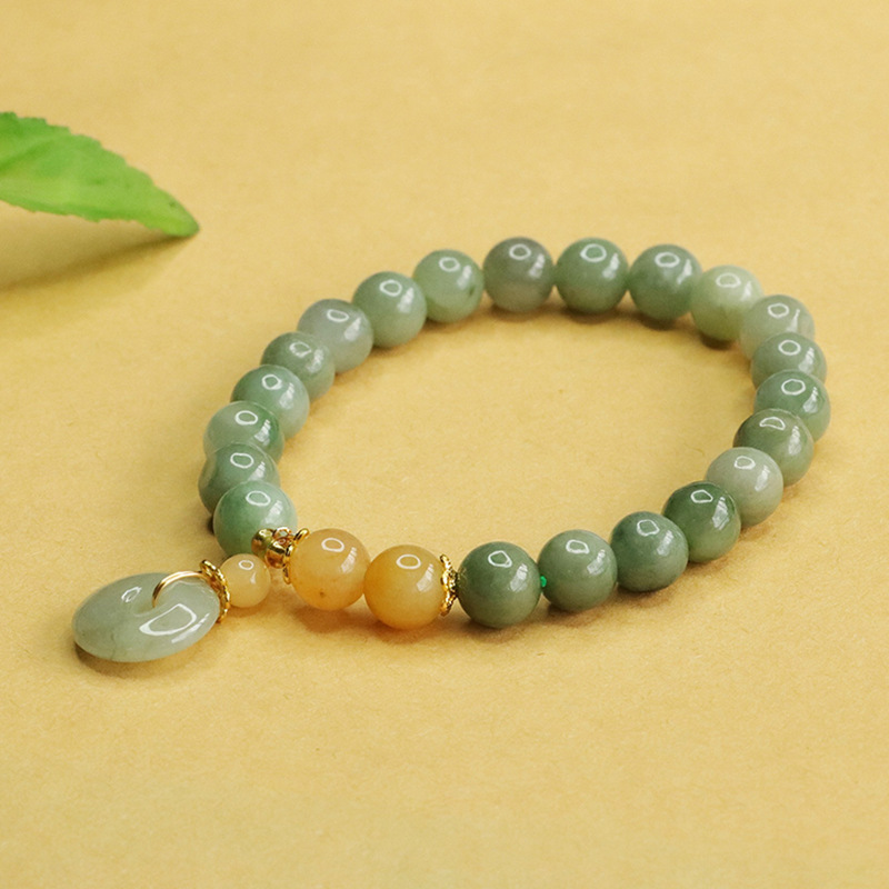 翡翠油青圆珠平安扣提溜手串(AY3090406)