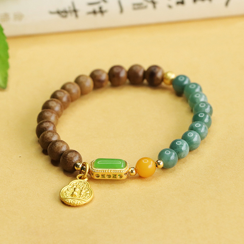 翡翠蓝水沉香木蜜蜡圆珠手串
