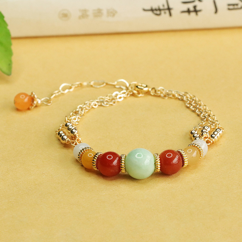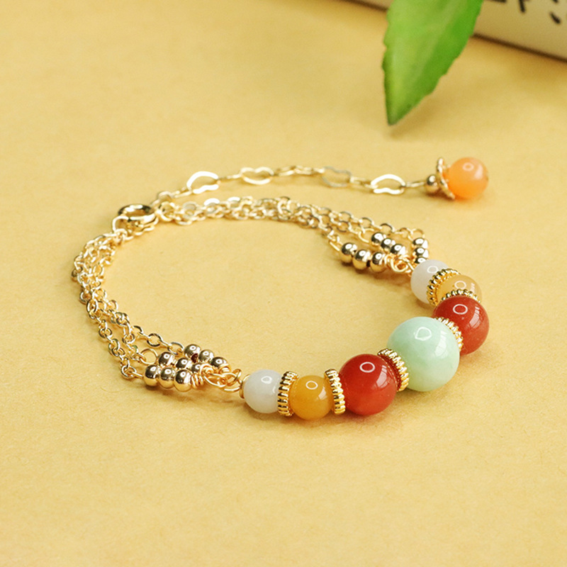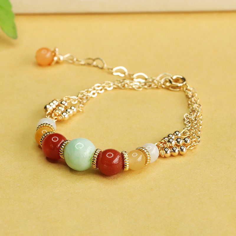 翡翠浅绿圆珠多彩手链(AY4040902)