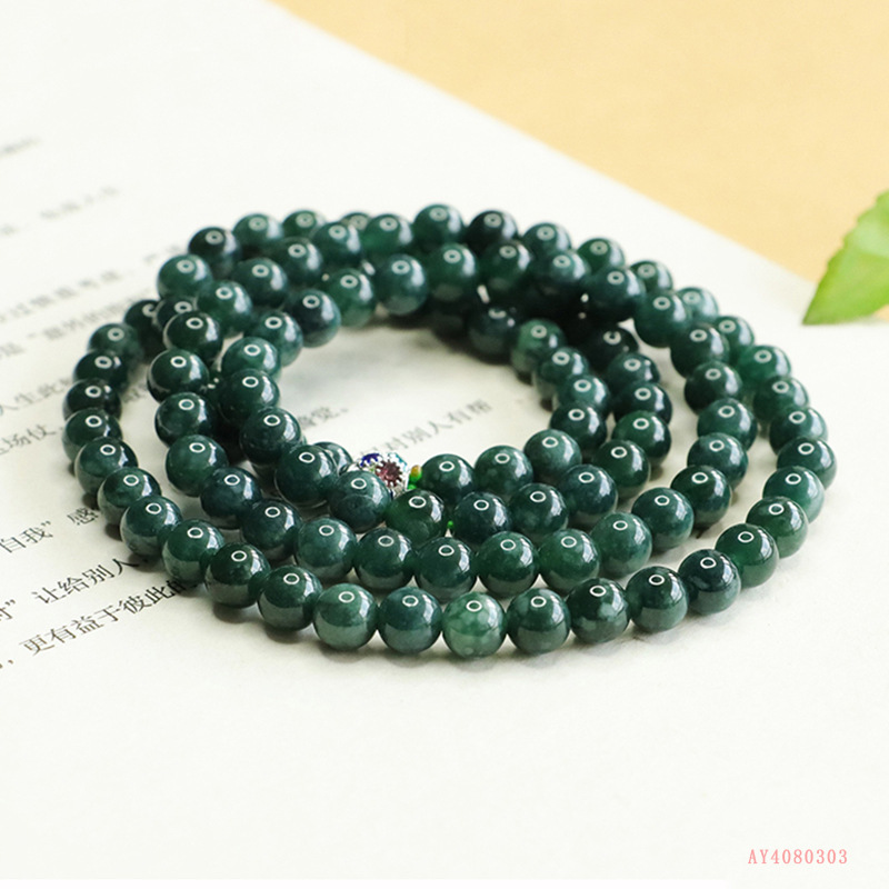 Aiyu Natural A Goods Jade Necklace Blue Water Round Beads Jade Woolen Chain Live Wholesale AY4080303