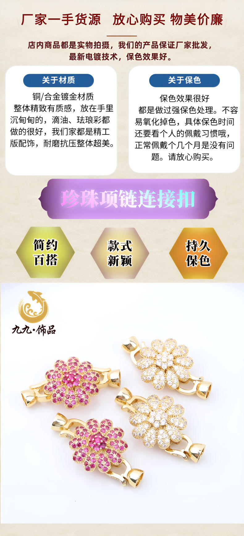 18K Electroplating Color Preserving Glowover Flower Double Head Connecting Buckle DIY Pearl Necklace Bracelet Capping Button Head