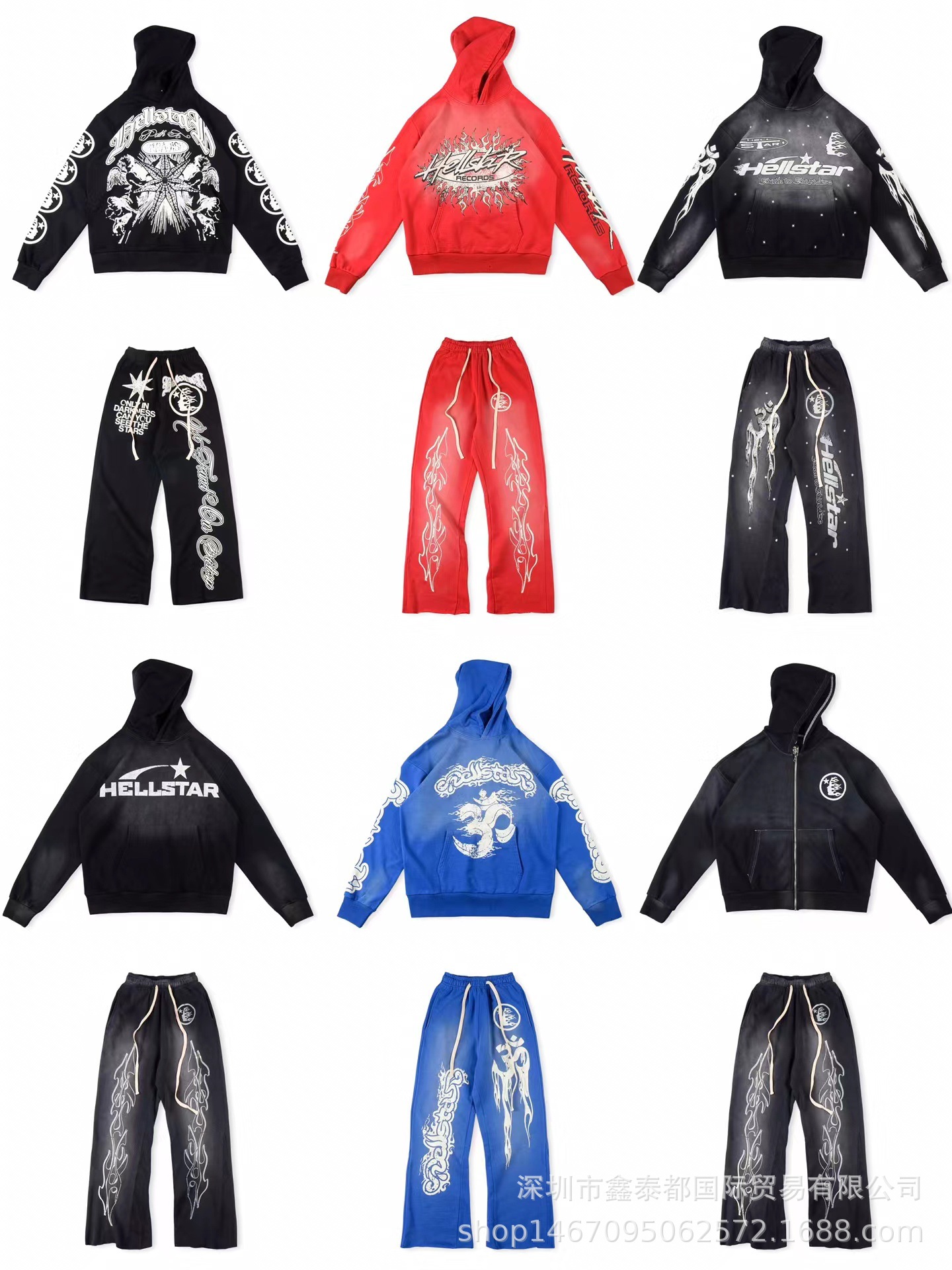 24FW Batch American Street Hellstar Sport Hoodie Men's and Women's Pullover Sweat Pants suit