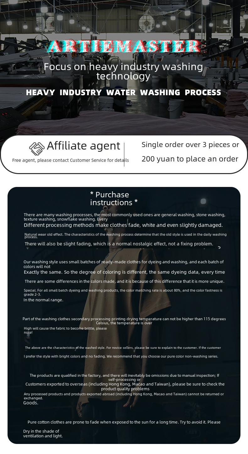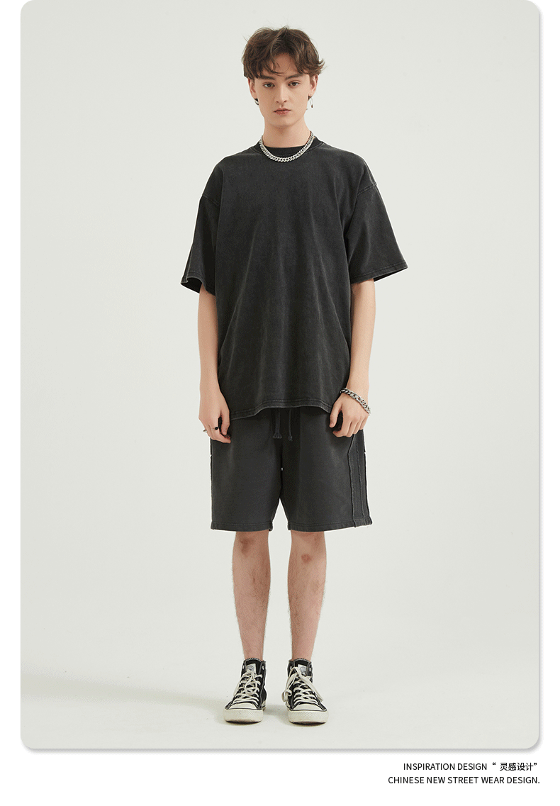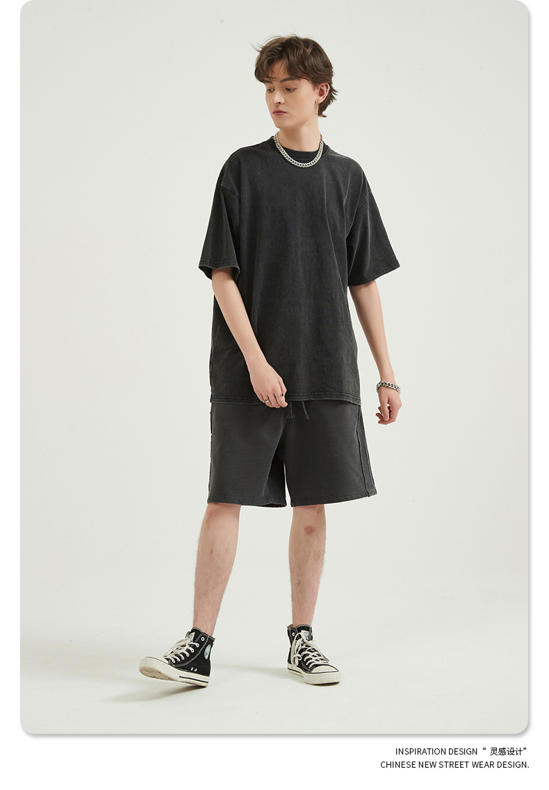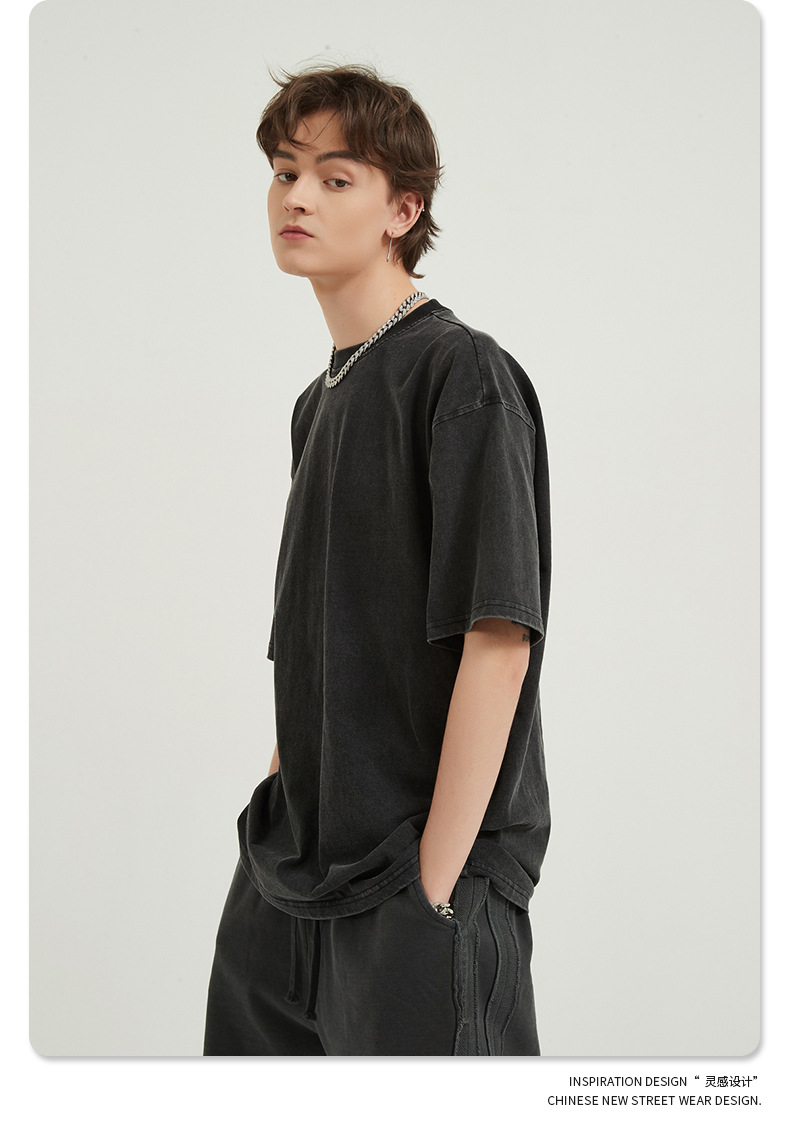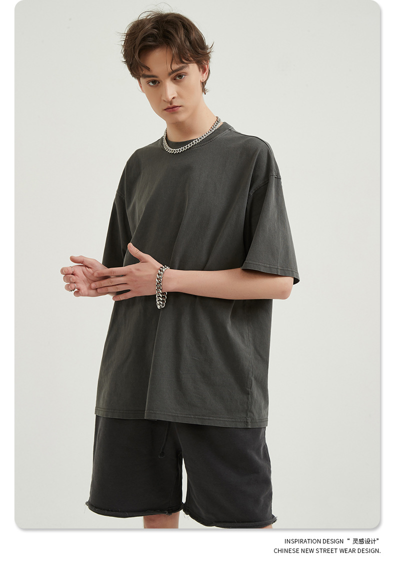 ARTIE Men's Wear | Heavy 250G Retro Washed Old Short Sleeve T-Shirt Men's Loose Cotton Men's Tide Brand T-Shirt